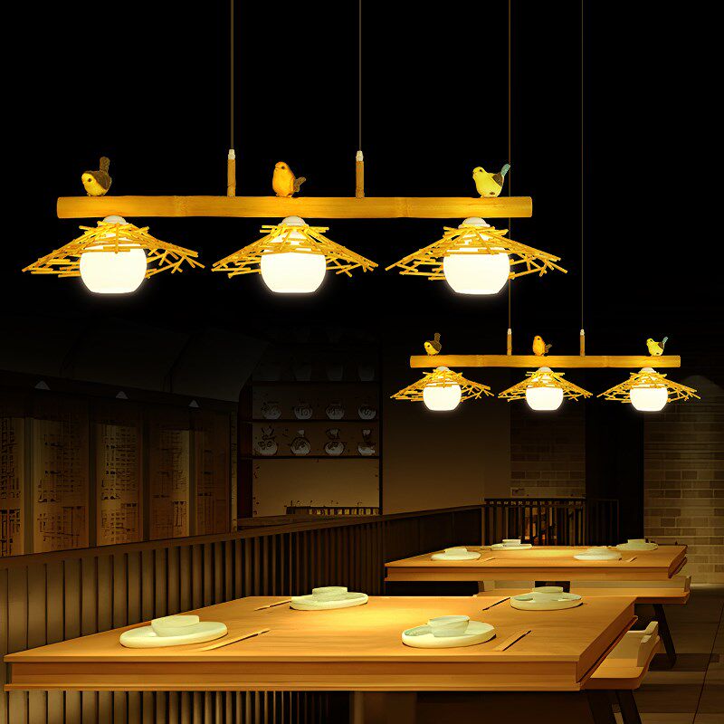 新中式 饭厅吧台茶室民宿酒店小鸟艺术竹编灯 餐厅吊灯三头创意个性