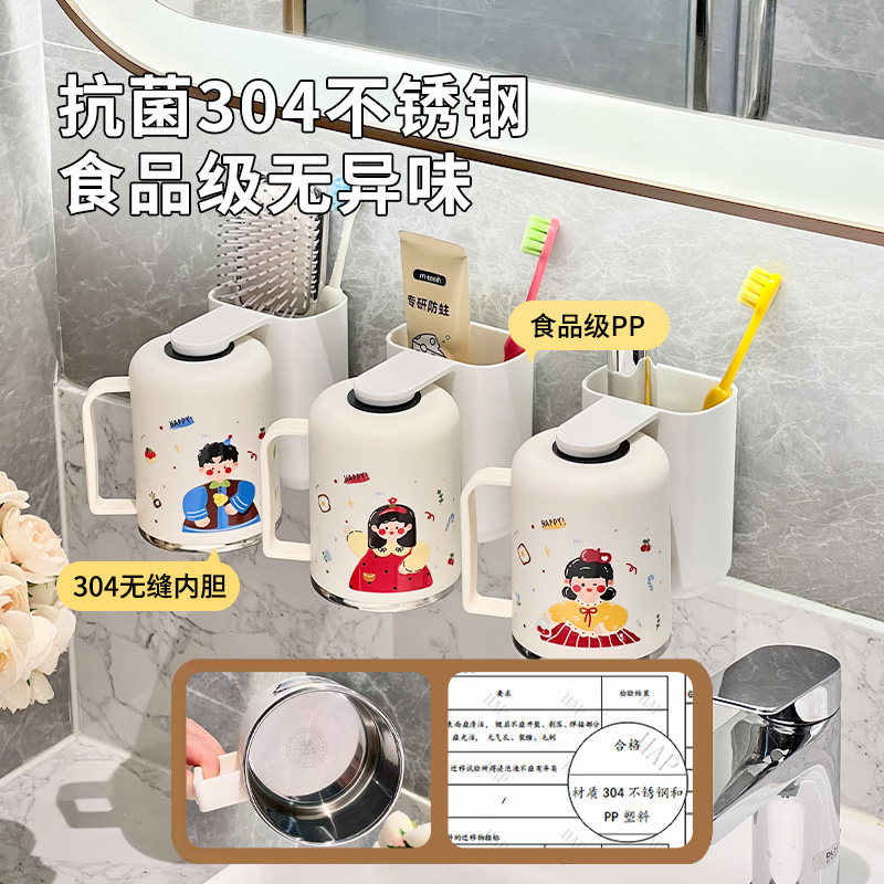 牙刷置物架304不锈钢漱口杯壁挂牙刷架刷牙杯一家三口四口 磁吸式