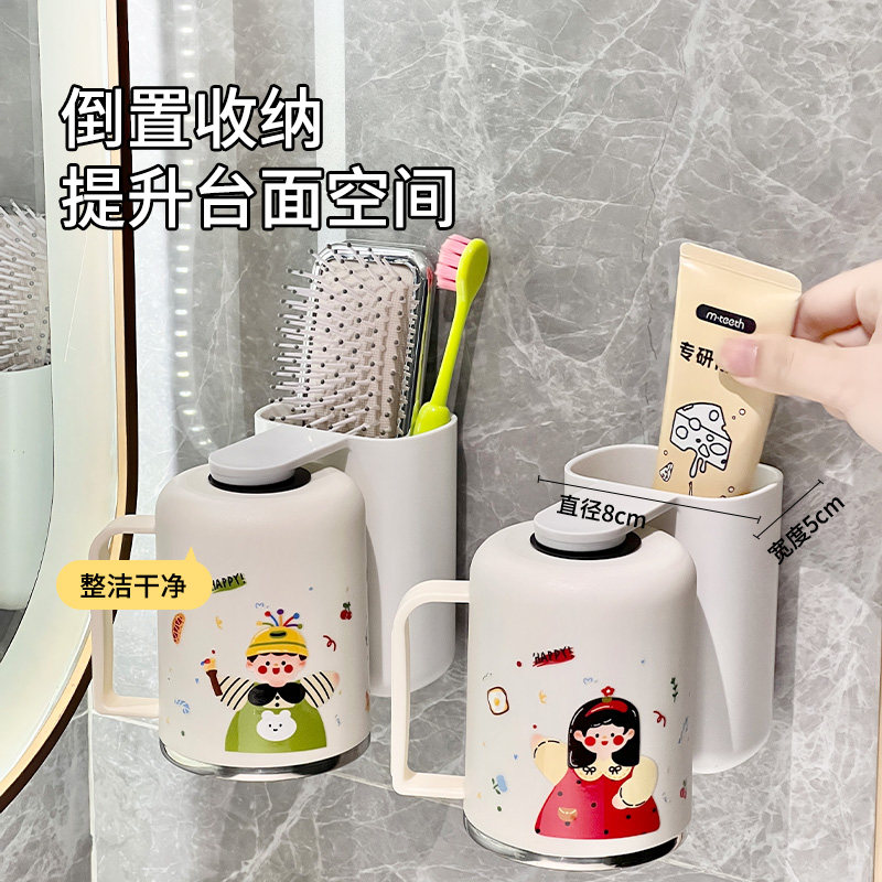 免打孔卫生间牙具座牙膏收纳浴室 牙刷牙杯壁挂置物架电动牙刷套装