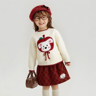 2026秋冬中大童毛衣半身裙洋气女宝拜年服两件套红色裙子 女童套装