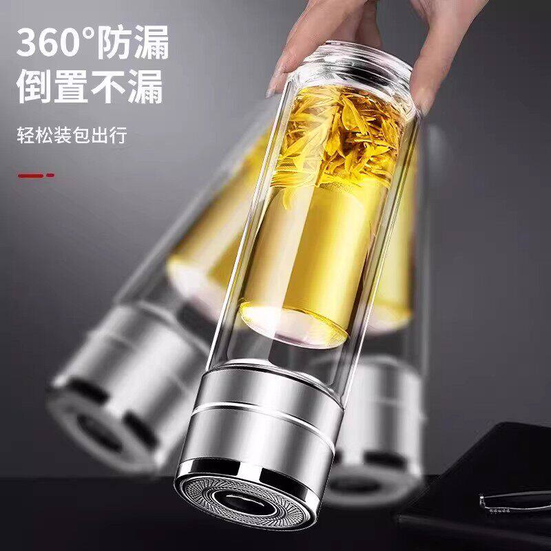 带盖家用男泡茶杯茶水分离家用耐高温 大容量双层隔热玻璃水杯男士