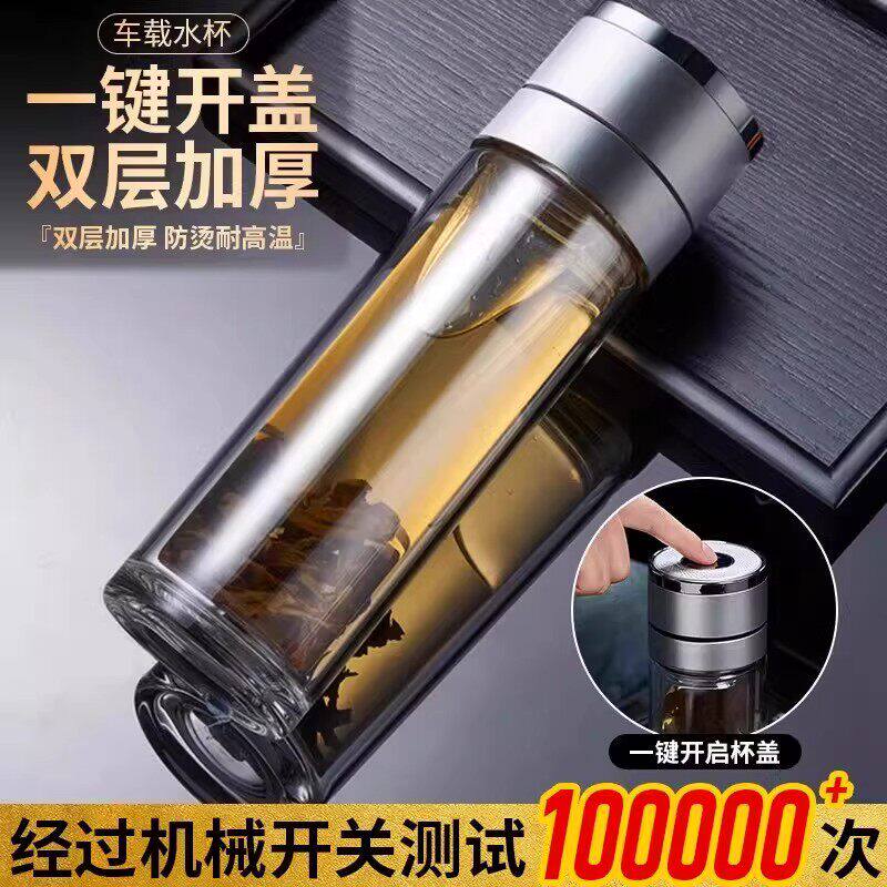 德国进口摔不烂一键开盖双层钢化玻璃杯男希防摔硼硅诺车载茶水杯
