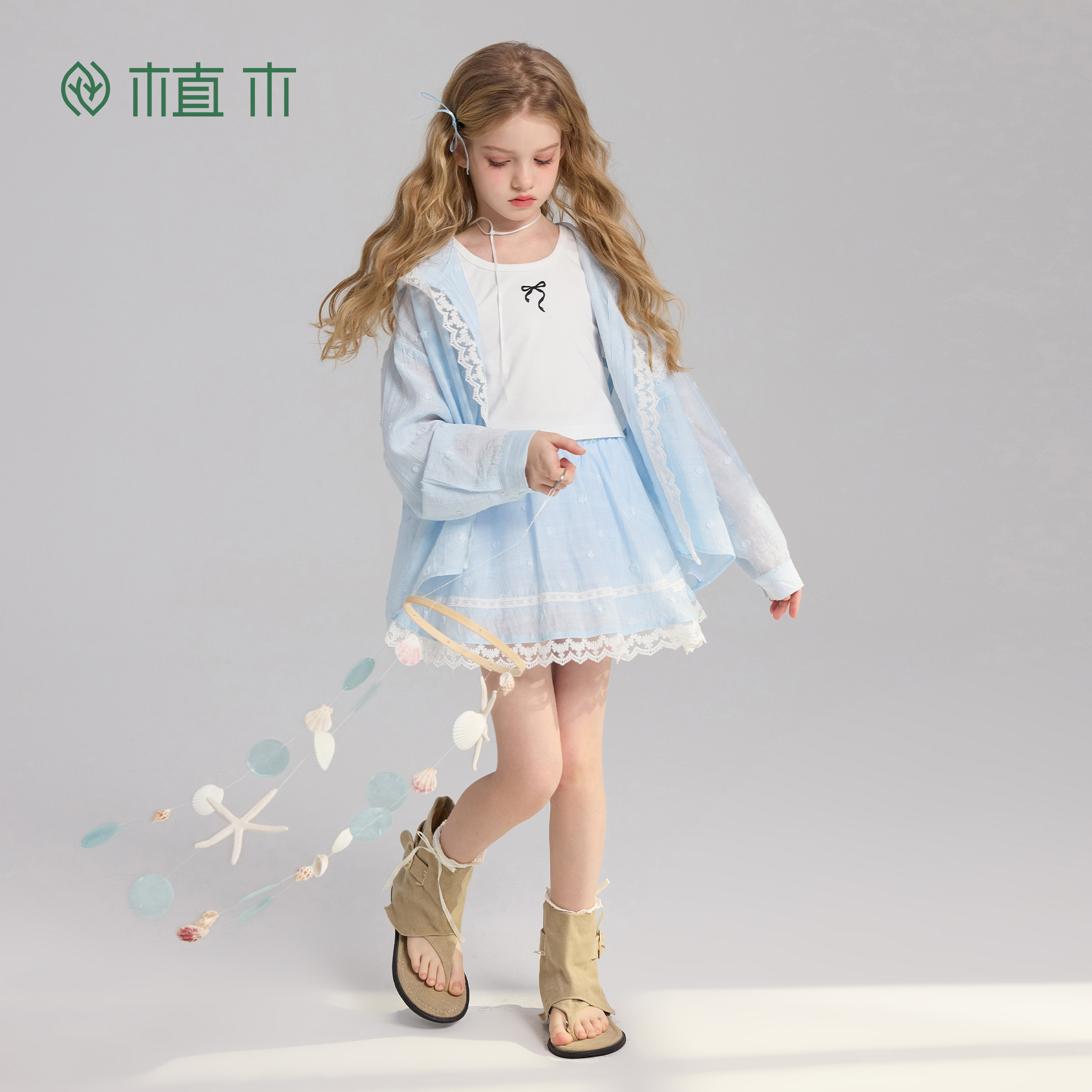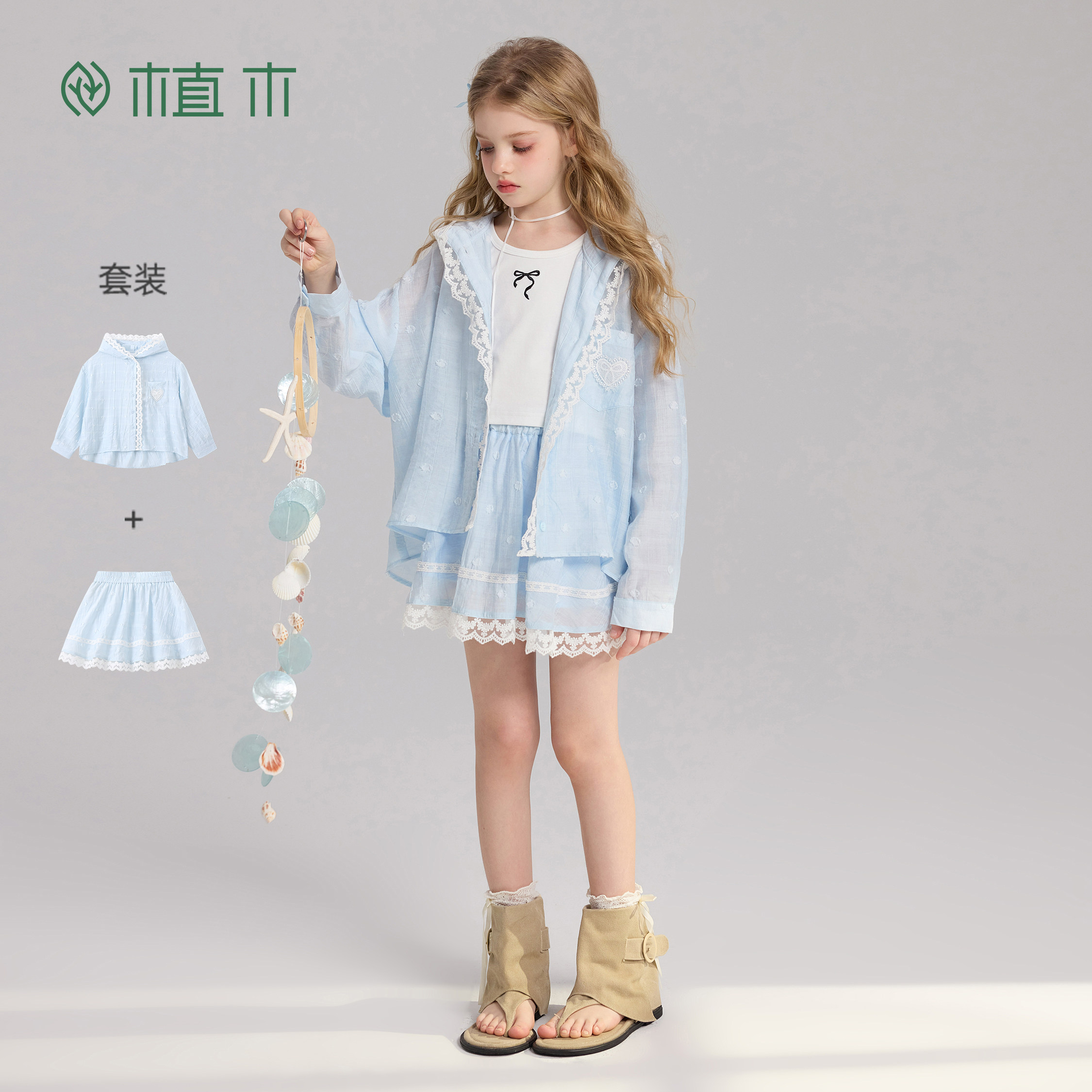 女童上衣 蕾丝花边套装 海盐轻序 青少年夏季 新款 短裙套装 植木由