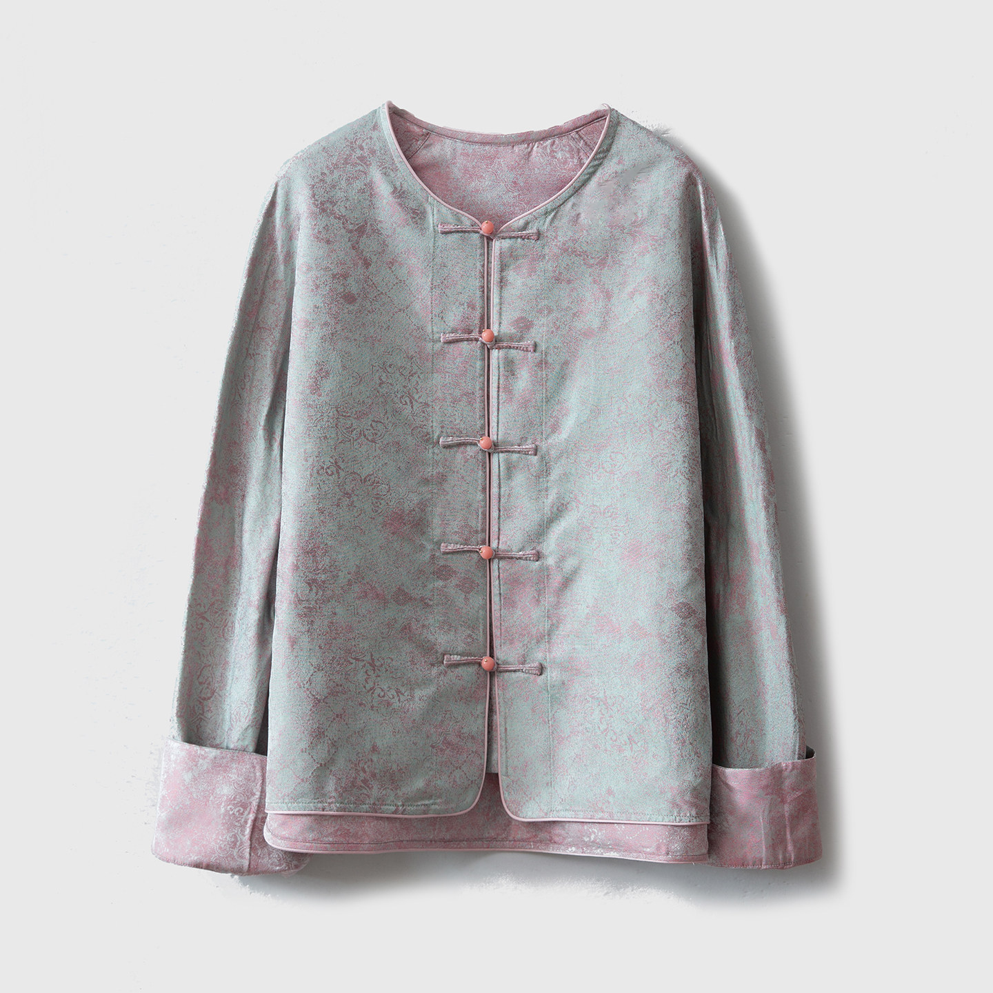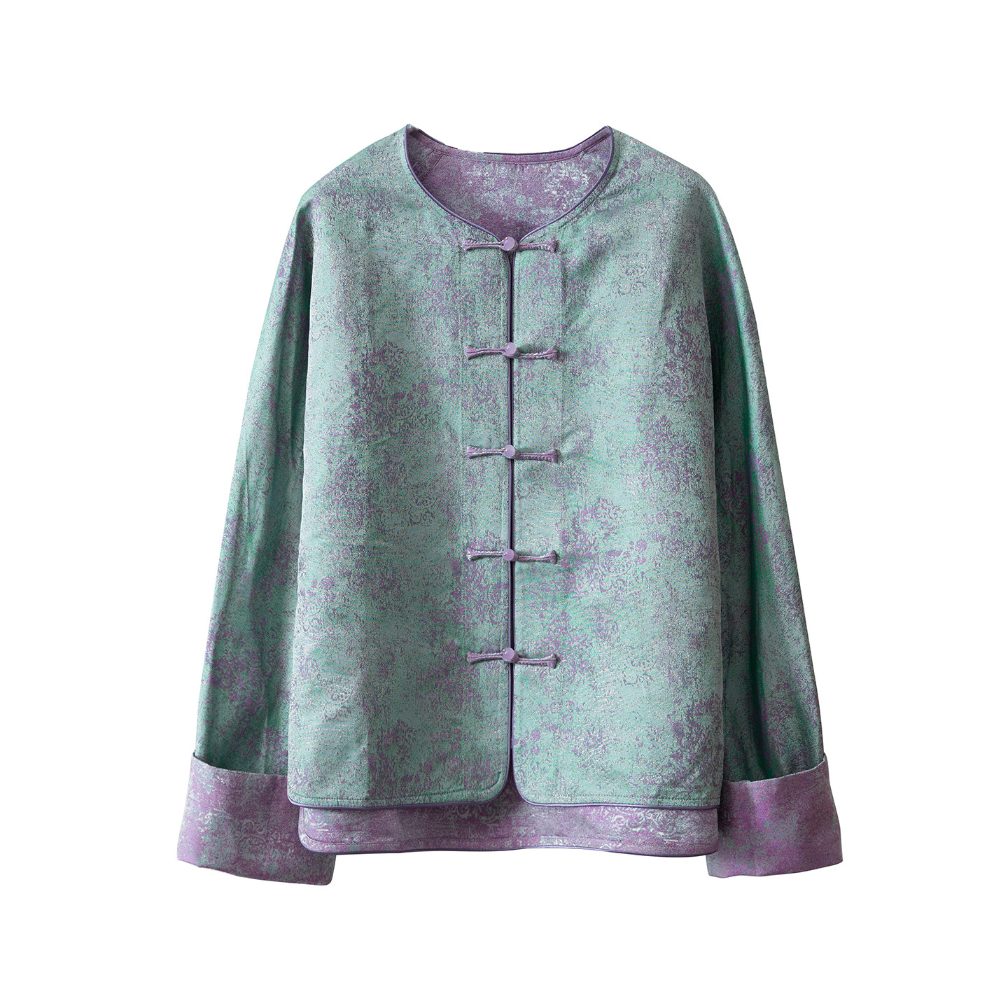 SILVIYE溯也 挽袖 外套圆领开衫 100%桑蚕丝国色织宋锦扎染真丝长袖