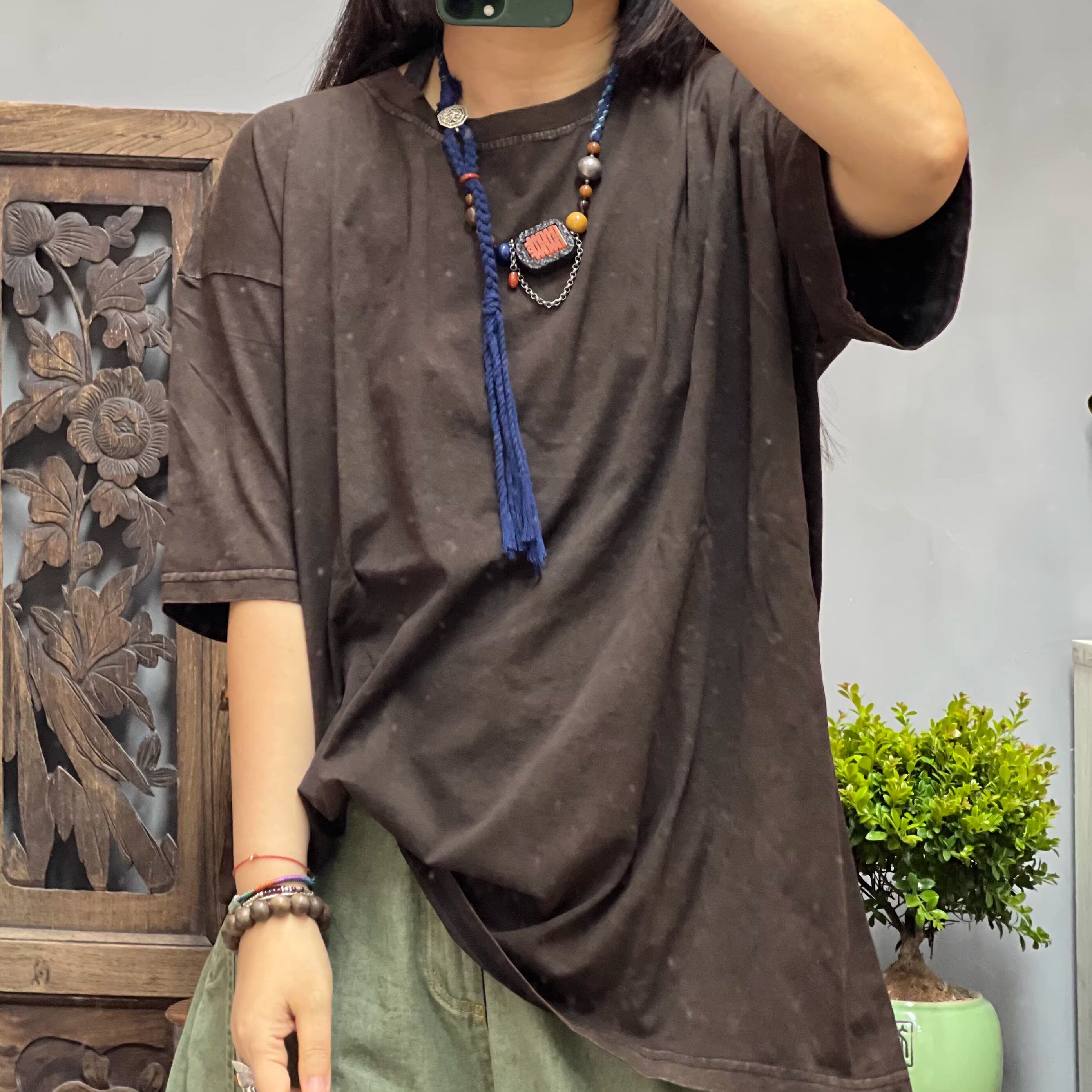 新品 8003 夏季 胸围128长69 炒色简约怀旧休闲百搭T恤女士上衣