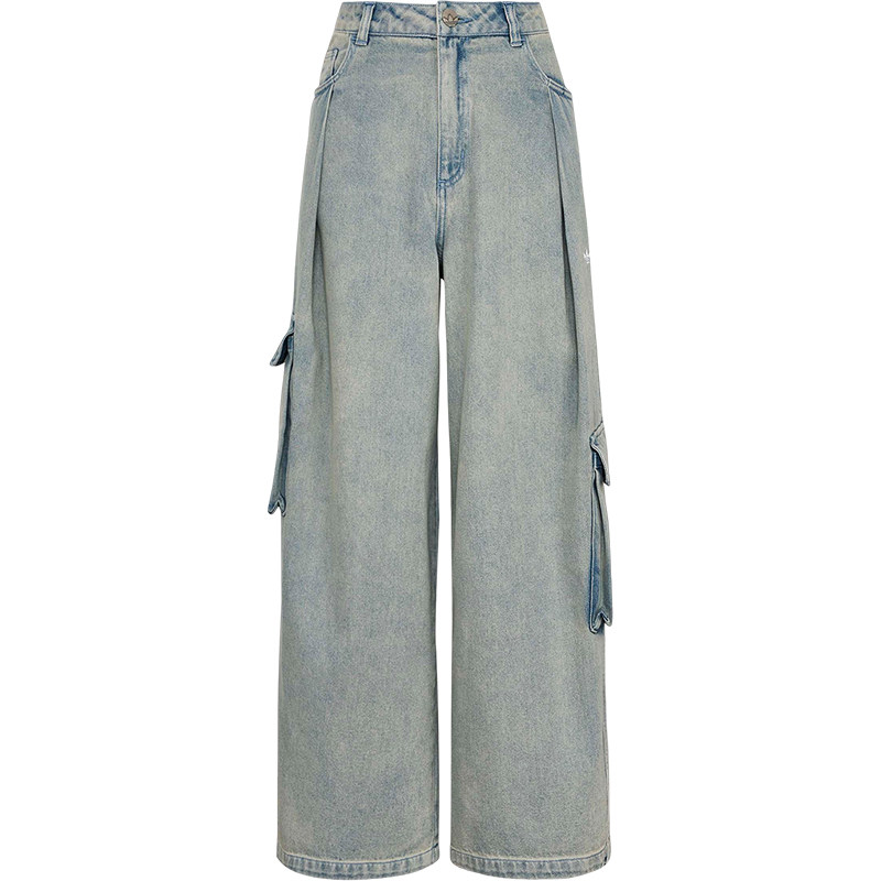 做旧牛仔经典 Adidas 阿迪达斯正品 三叶草女士工装 KU9533 宽松长裤由