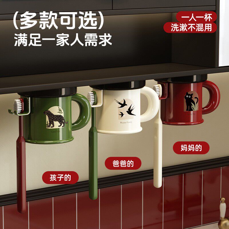 卫生间电动牙刷架刷牙杯漱口杯浴室收纳架 牙刷置物架免打孔壁挂式