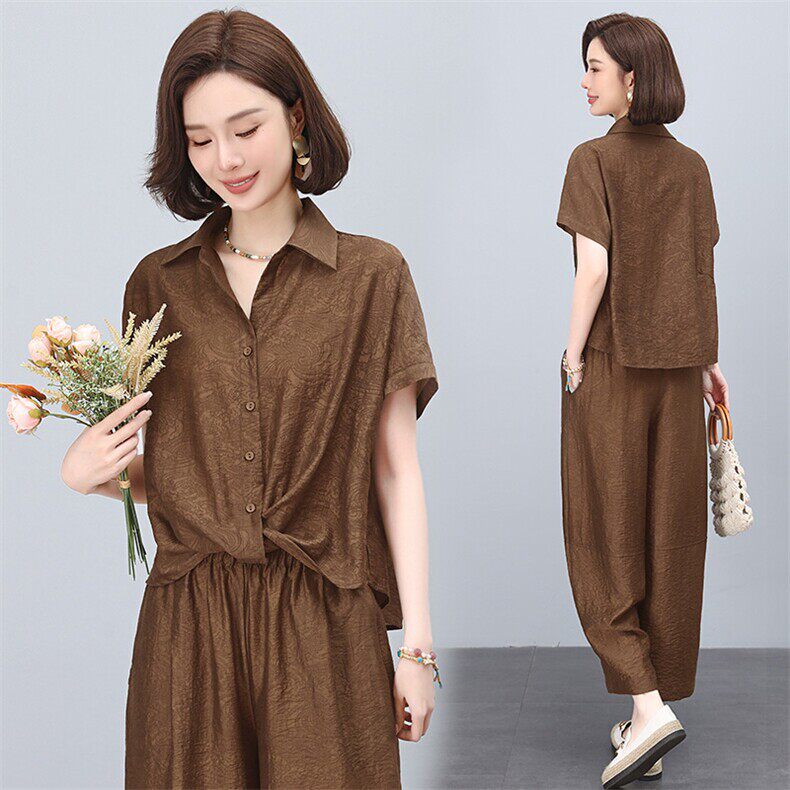 宽松洋气衬衫 复古风天丝套装 女2025夏季 新款 两件套 阔腿裤由