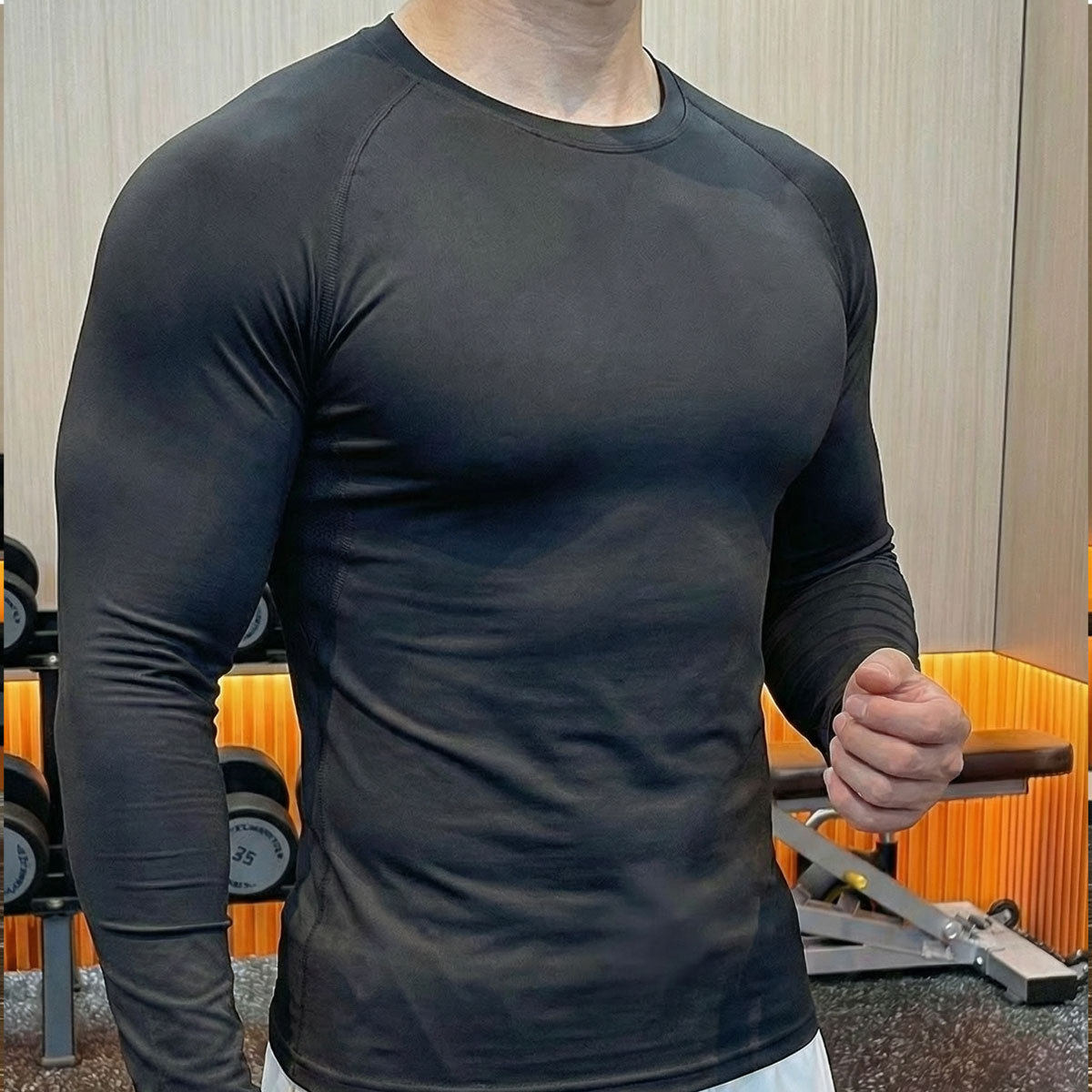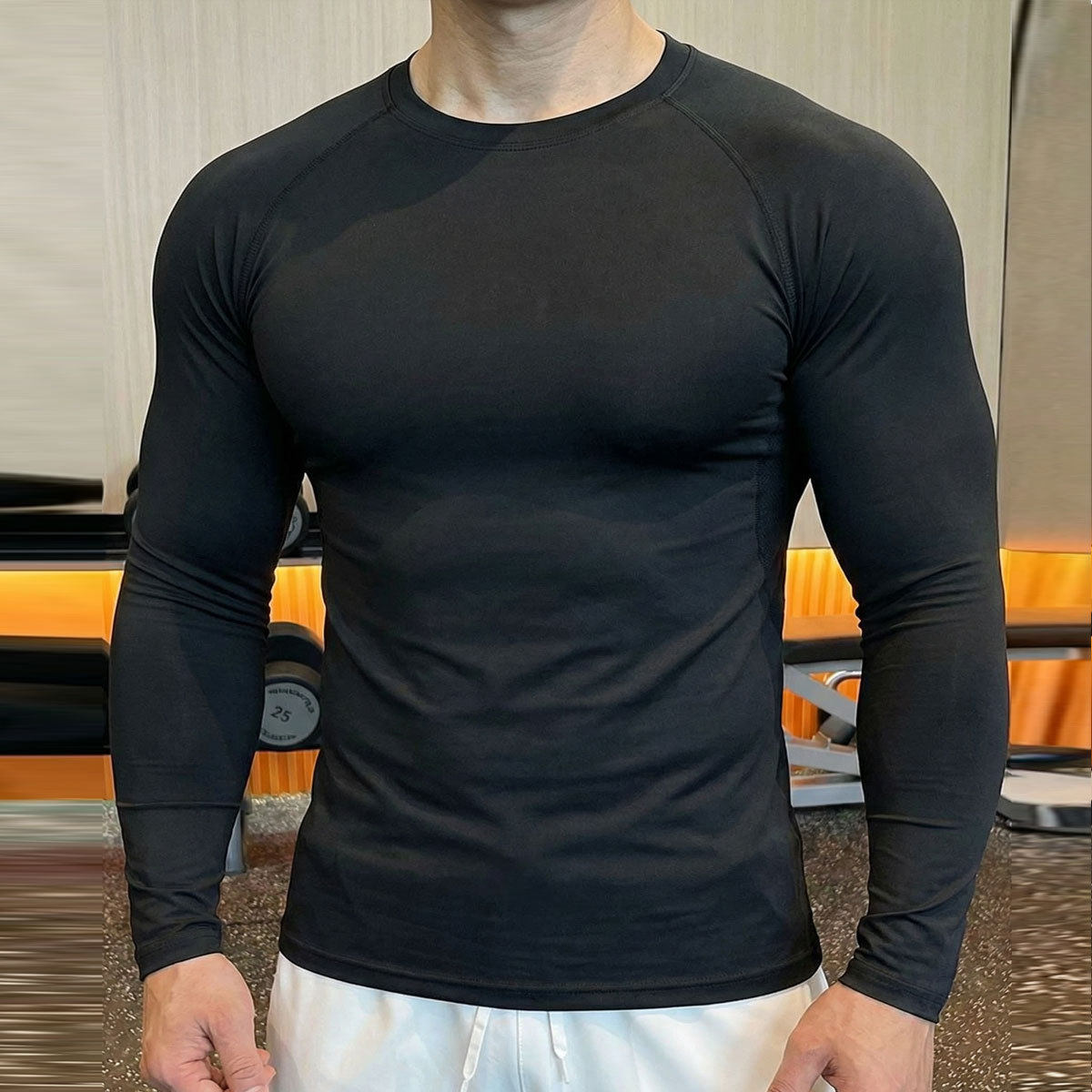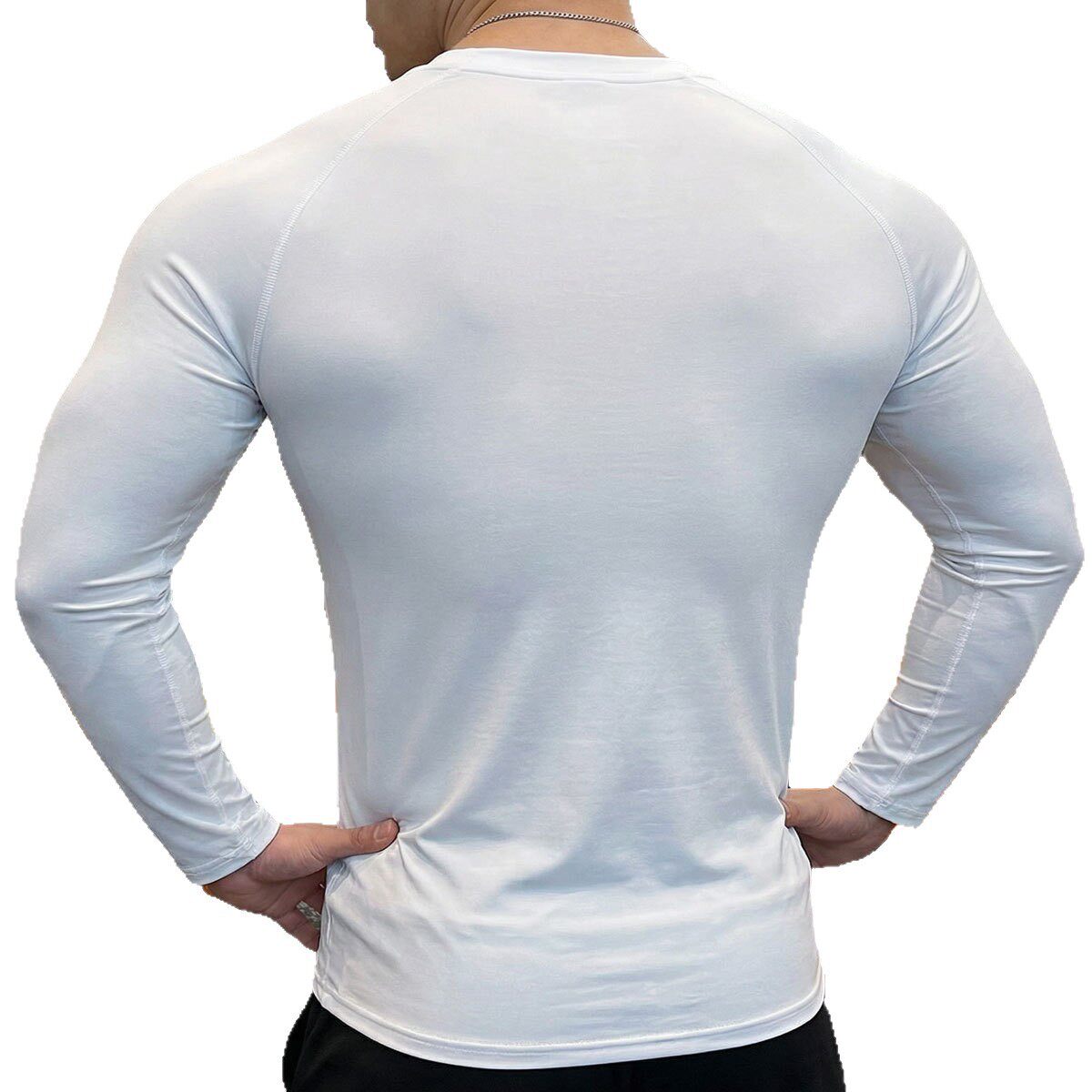 长袖 V领健身衣速干透气弹力动休闲T恤跑步训练服 男士 新修身