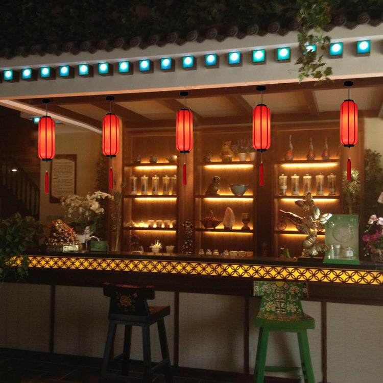 吊灯古典防雨防水吊灯茶楼布艺红灯笼饭店客栈走廊灯中国风 新中式由