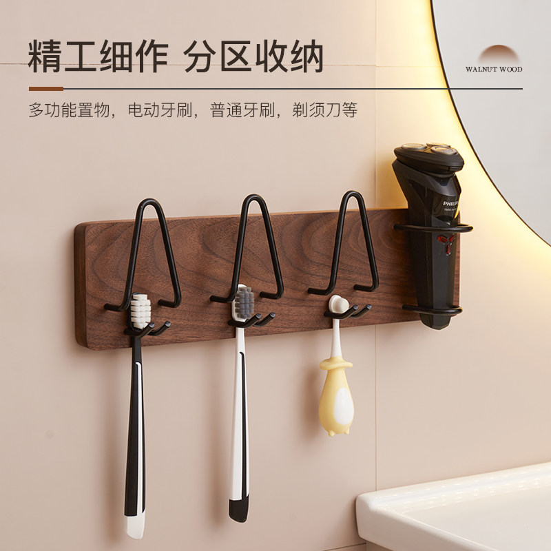 为您提供商品实木卫生间免打孔牙膏牙杯漱口杯沥水架 电动牙刷架子置物架壁挂式的详细介绍,
