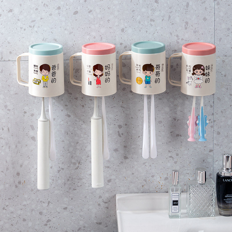 刷牙杯 牙刷架子置物架牙杯挂架电动牙刷架一家三口四口家庭壁挂式由