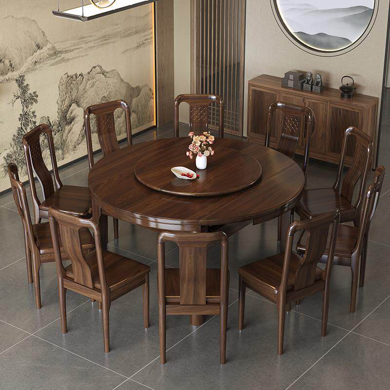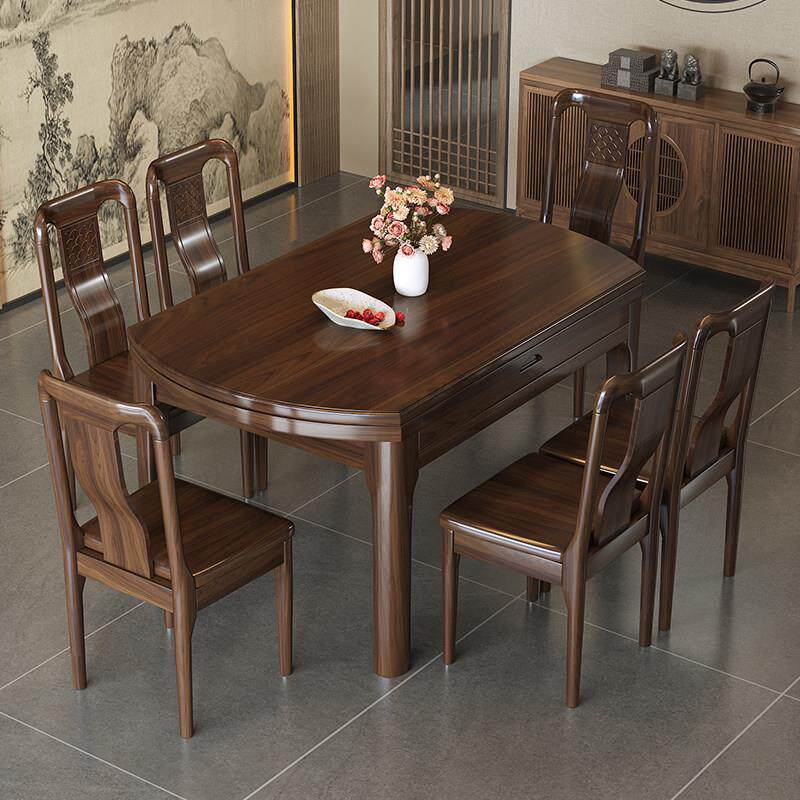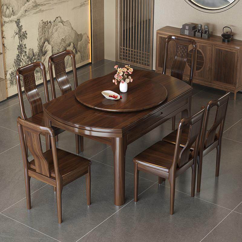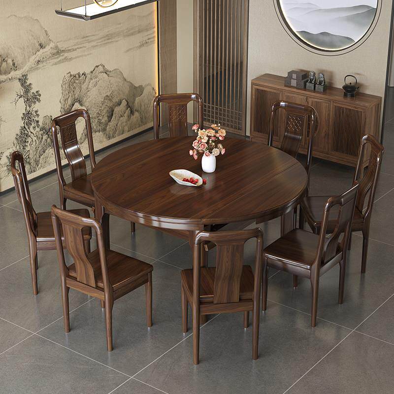 为您提供商品家用小户型吃饭桌子伸缩折叠可变圆桌 乌金木实木餐桌椅组合新中式的详细介绍,