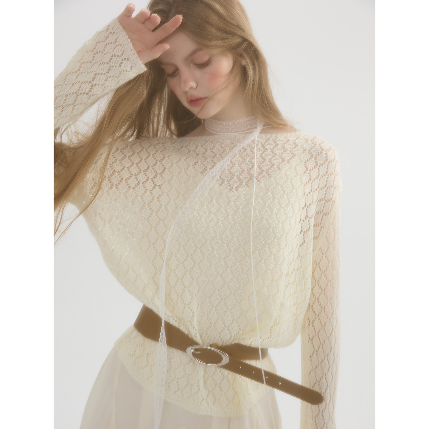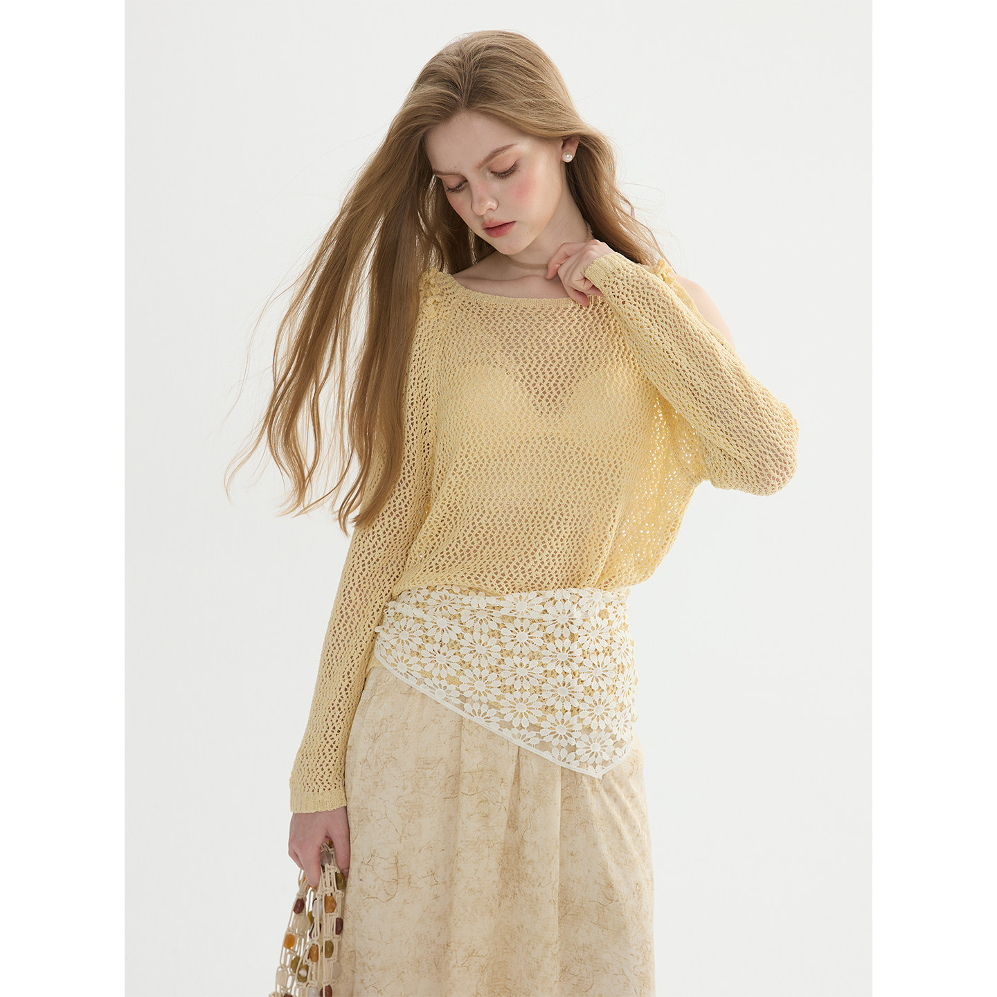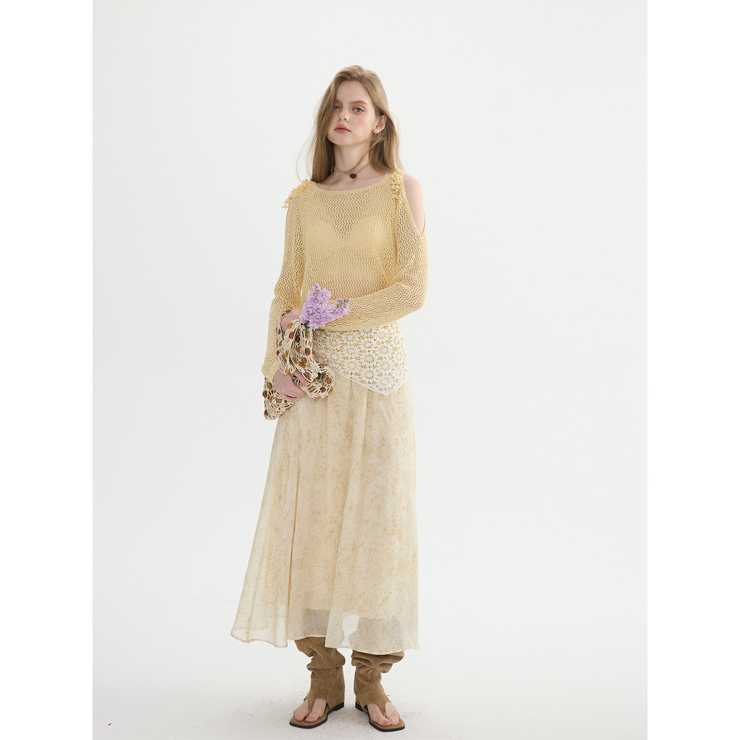 镂空针织衫 套装 半裙 猫酱紫露肩针织衫 所有女生 衣橱直播间由