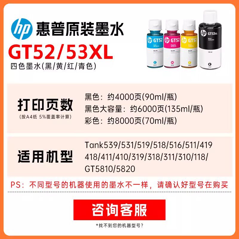 755 592 588 531 惠普原装 519 593 672 GT53XL黑色GT52 676 51XL彩色墨水tank582 599 215打印机 598 510 726