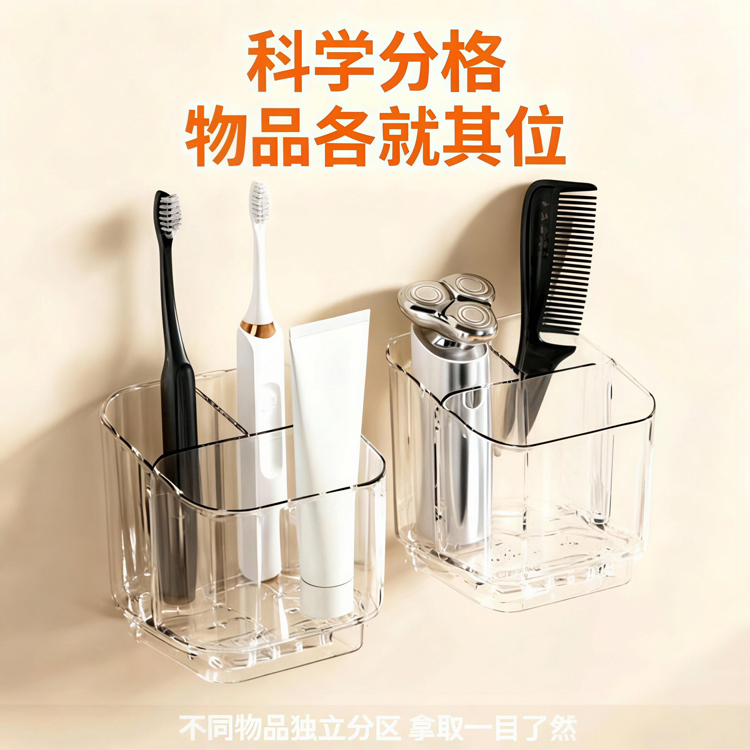 为您提供商品免打孔卫生间梳子牙膏电动牙刷收纳神器 简约分隔牙刷置物架壁挂式的详细介绍,