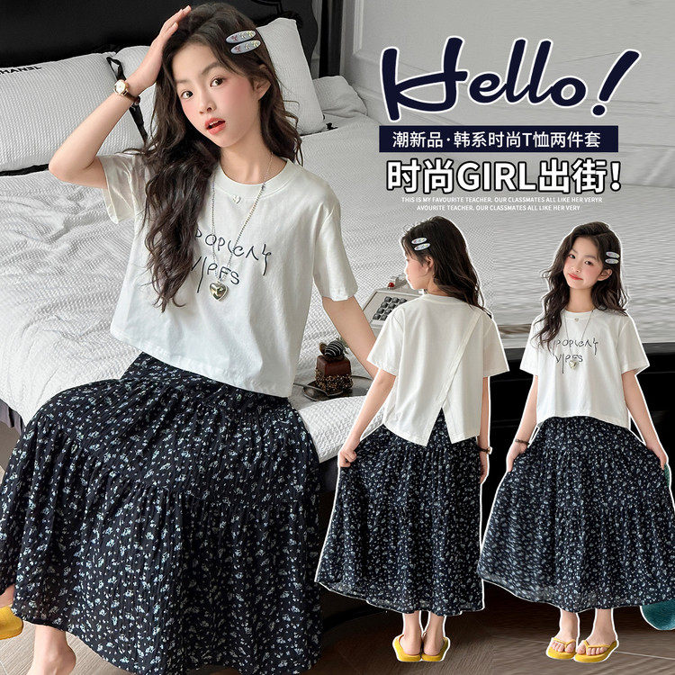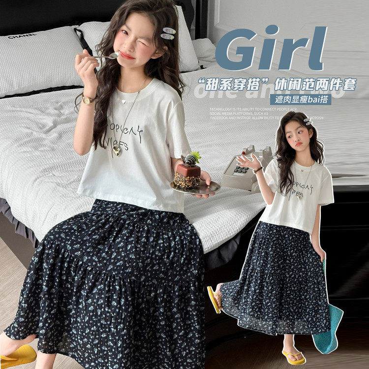 为您提供商品女童夏装 2026网红洋气碎花半身裙中大童女孩短袖 两件套休闲装 套装的详细介绍,