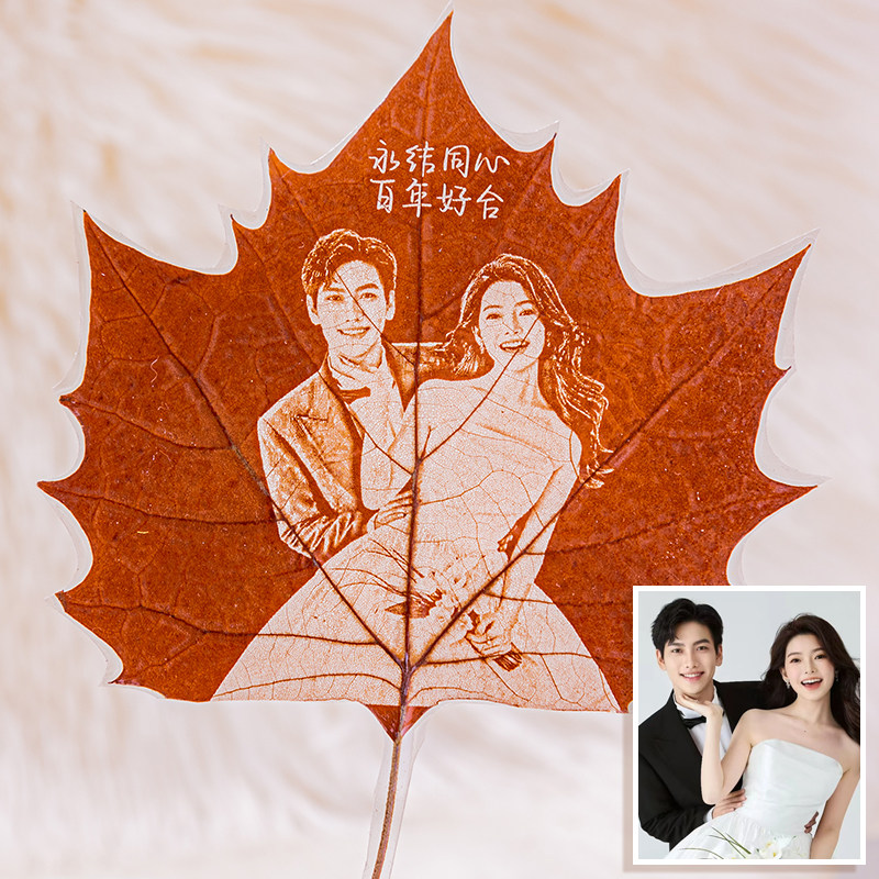 梧桐叶雕刻照片定制男女生朋友情侣闺蜜生日礼物结婚纪念日创意