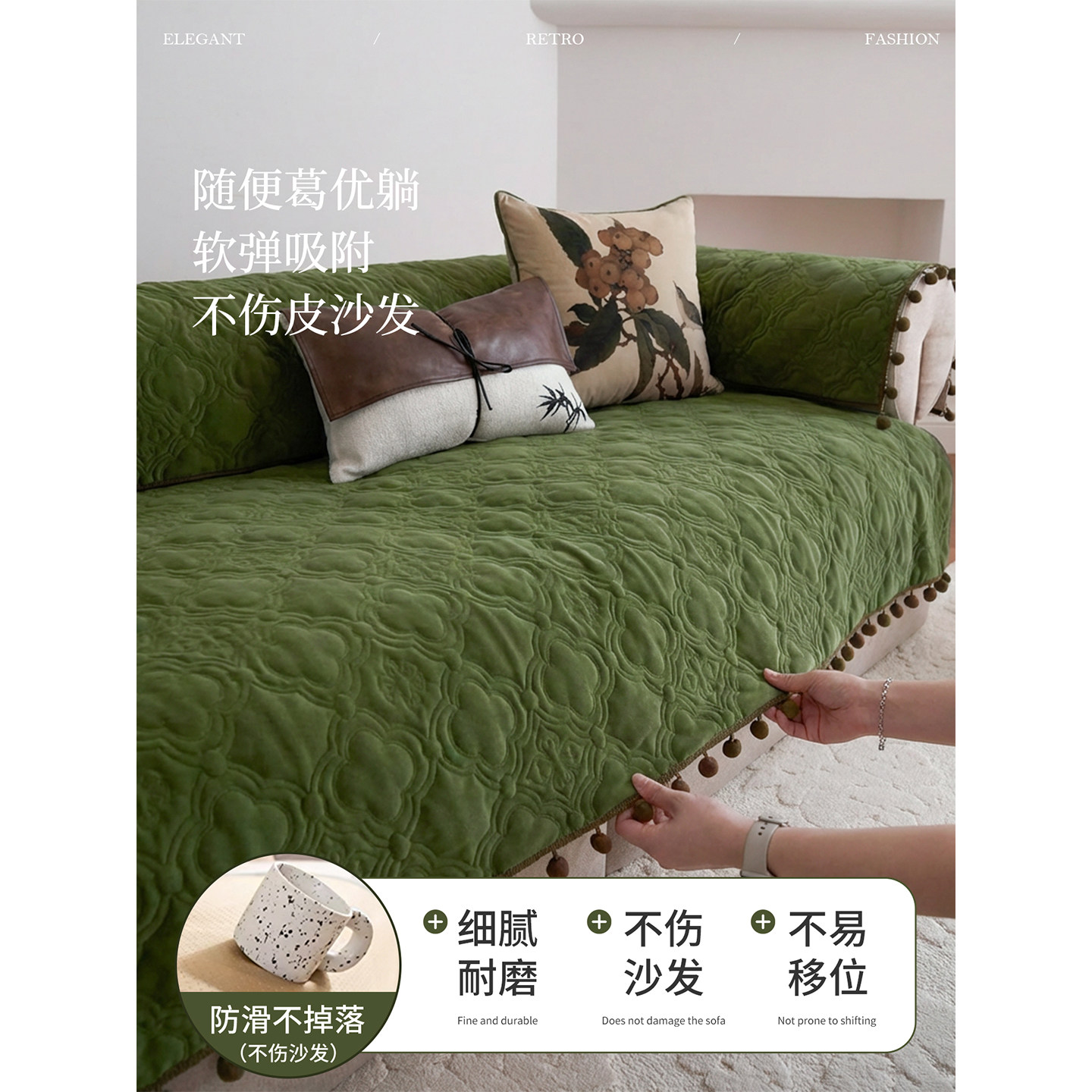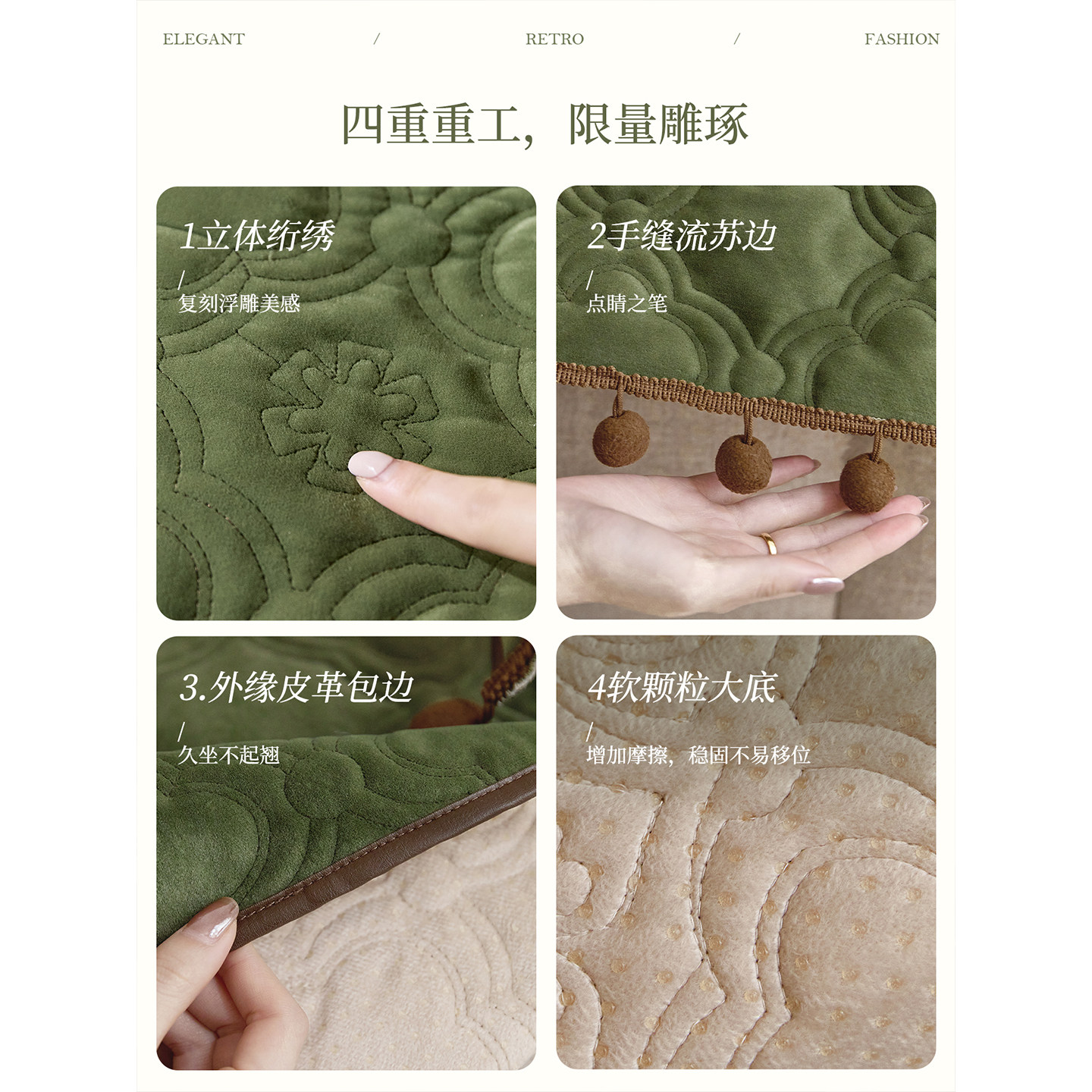 四季 通用固定防滑秋冬毛绒坐垫子 复古异形沙发垫盖布2026新款 法式