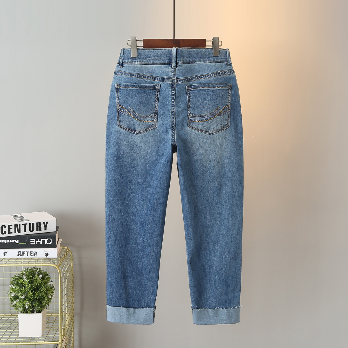 为您提供商品外贸特大码 300斤胖M春夏新款 高腰弹力卷边牛仔九分裤 女牛仔八分裤的详细介绍,