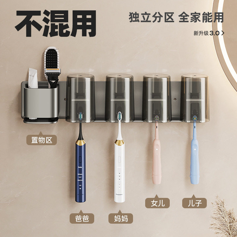 为您提供商品电动牙刷牙膏收纳架子 牙刷置物架免打孔漱口杯刷牙杯卫生间壁挂式的详细介绍,