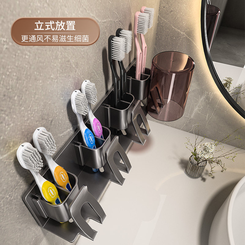 电动牙刷架子 牙刷置物架免打孔枪灰卫生间漱口杯刷牙杯收纳壁挂式