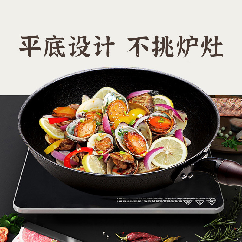 炒锅家用不粘锅无涂层燃气灶适用 章丘炒菜锅传统铁锅官方旗舰老式