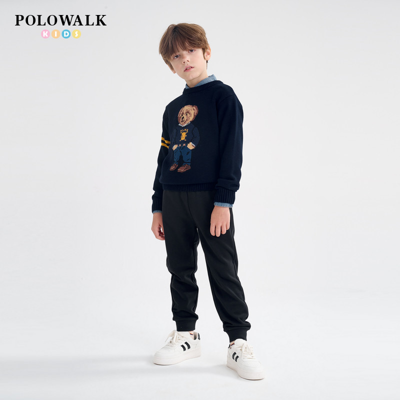 男女童大毛圈运动美式 POLOWALK童装 新品 2026春夏新款 束脚 休闲卫裤由