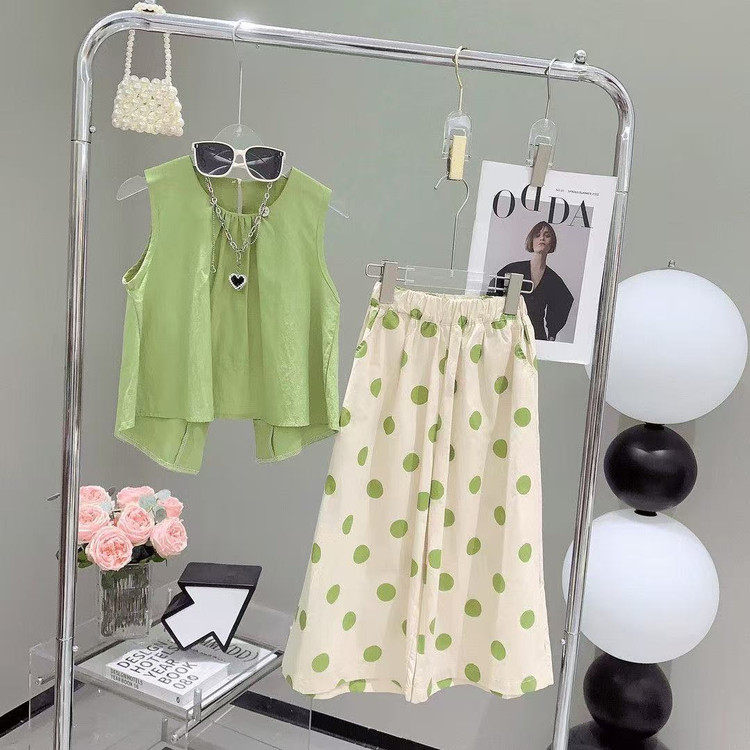 洋气儿童短袖 2026新款 时髦百褶短裙两件套 阔腿裤 套装 女童夏季 韩版由