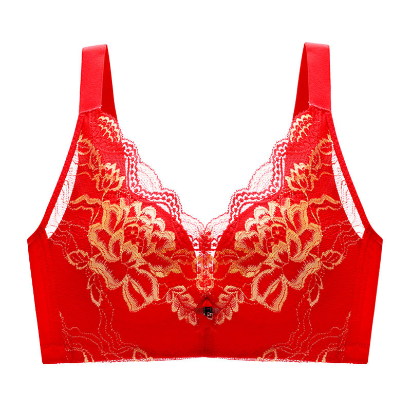 内衣女士大红色文胸本命年龙年收副乳防下垂无钢圈胸罩人内裤 套装由
