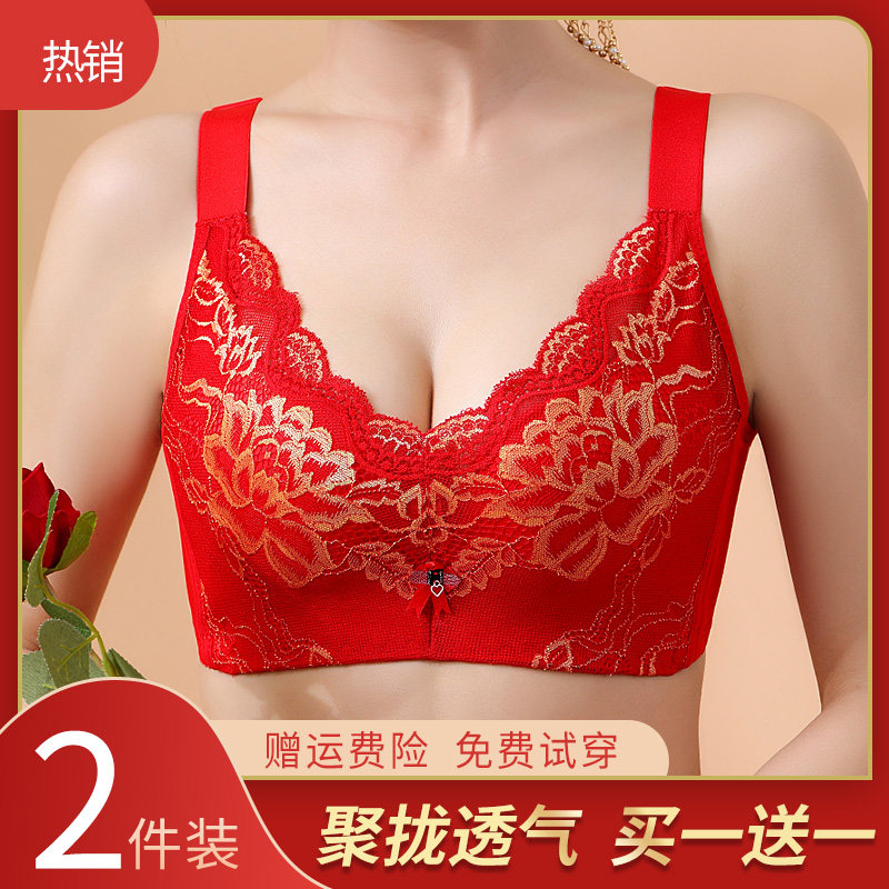 内衣女士大红色文胸本命年龙年收副乳防下垂无钢圈胸罩人内裤 套装