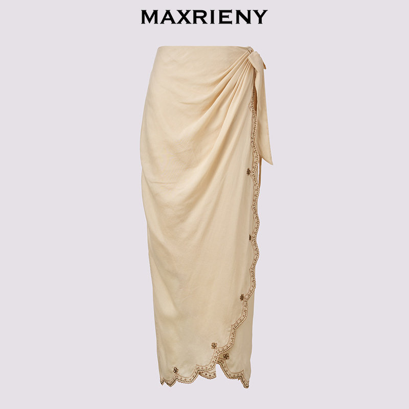 MAXRIENY精致日常感围裹式 褶皱高腰半裙25秋款 中长裙 商场同款