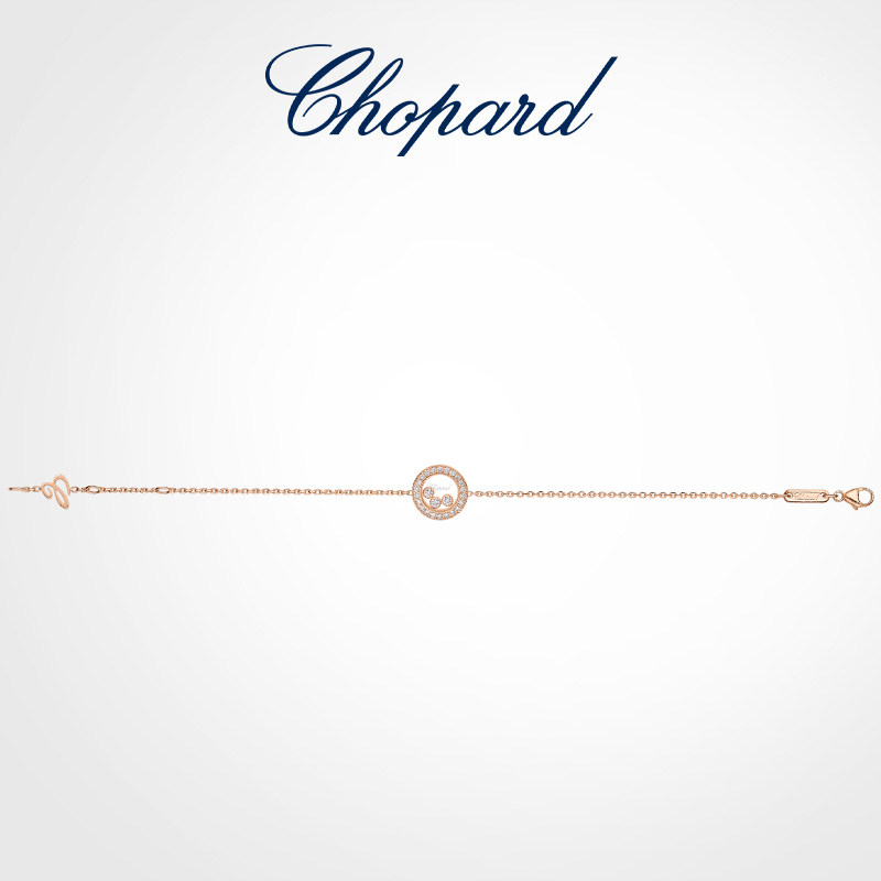 18K玫瑰金快乐满钻叠戴情侣手链女生日礼物送女友 Chopard萧邦