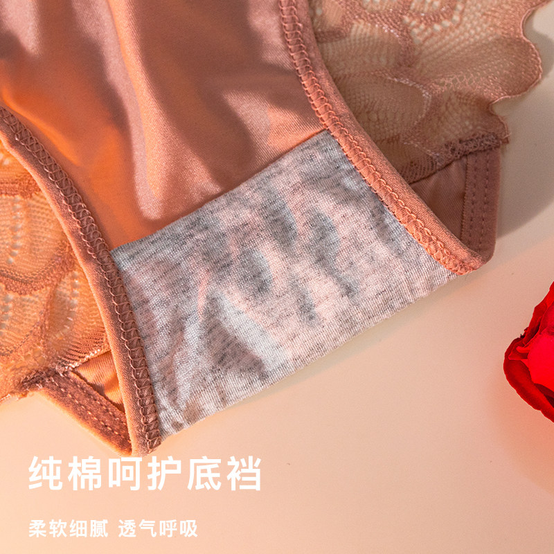 轻奢缎面蝴蝶结镂空夏薄蕾丝速干透气三角裤 纯棉裆 女新款 性感内裤