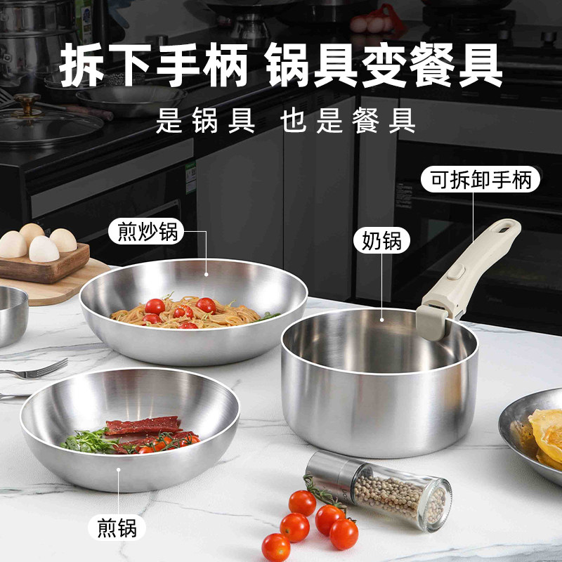 锅组套装 10不锈钢不粘煎炒锅可拆手柄锅电磁燃气全套家用厨具由