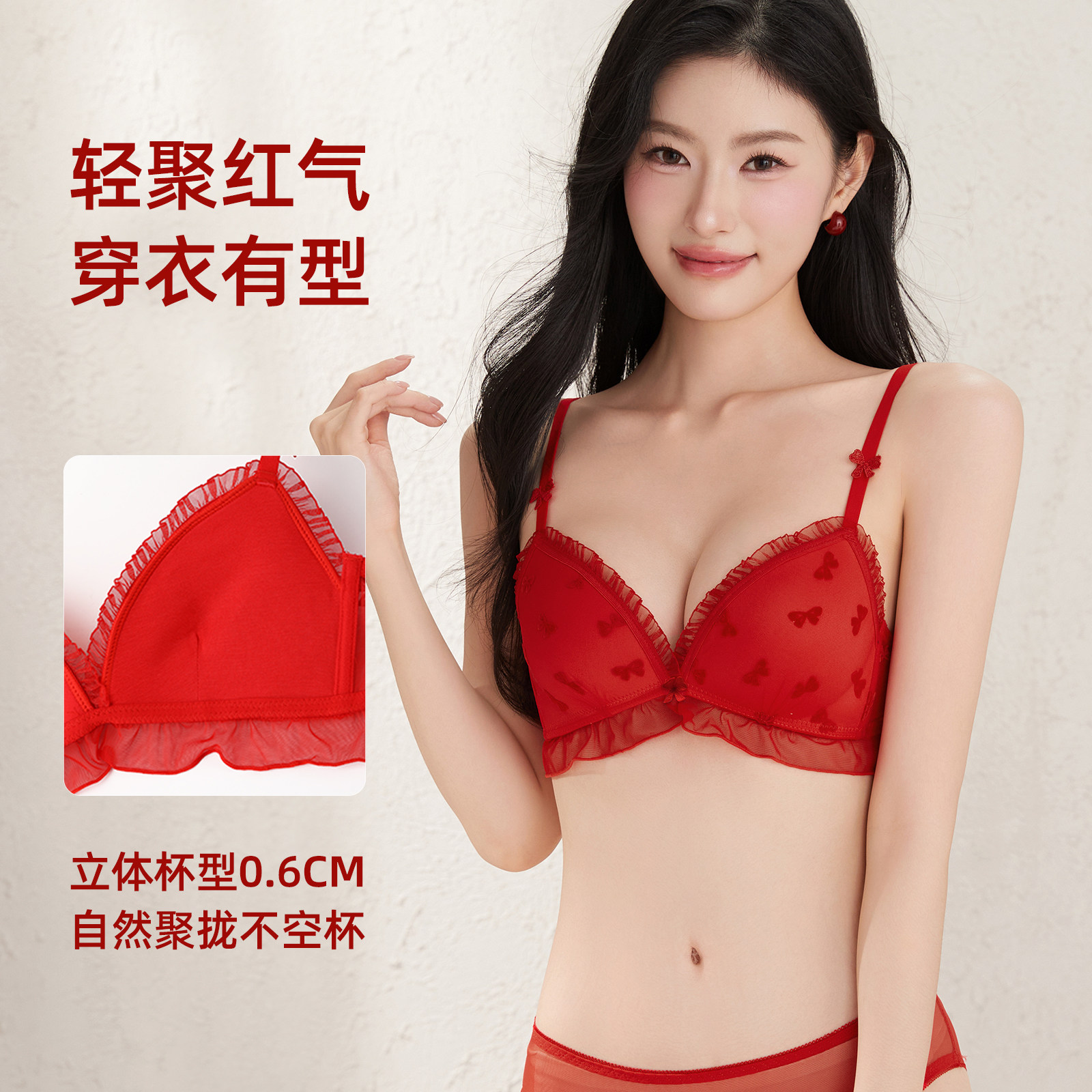红运礼盒 六只兔子大红色礼盒内衣女小胸聚拢本命年婚礼文胸罩内裤由