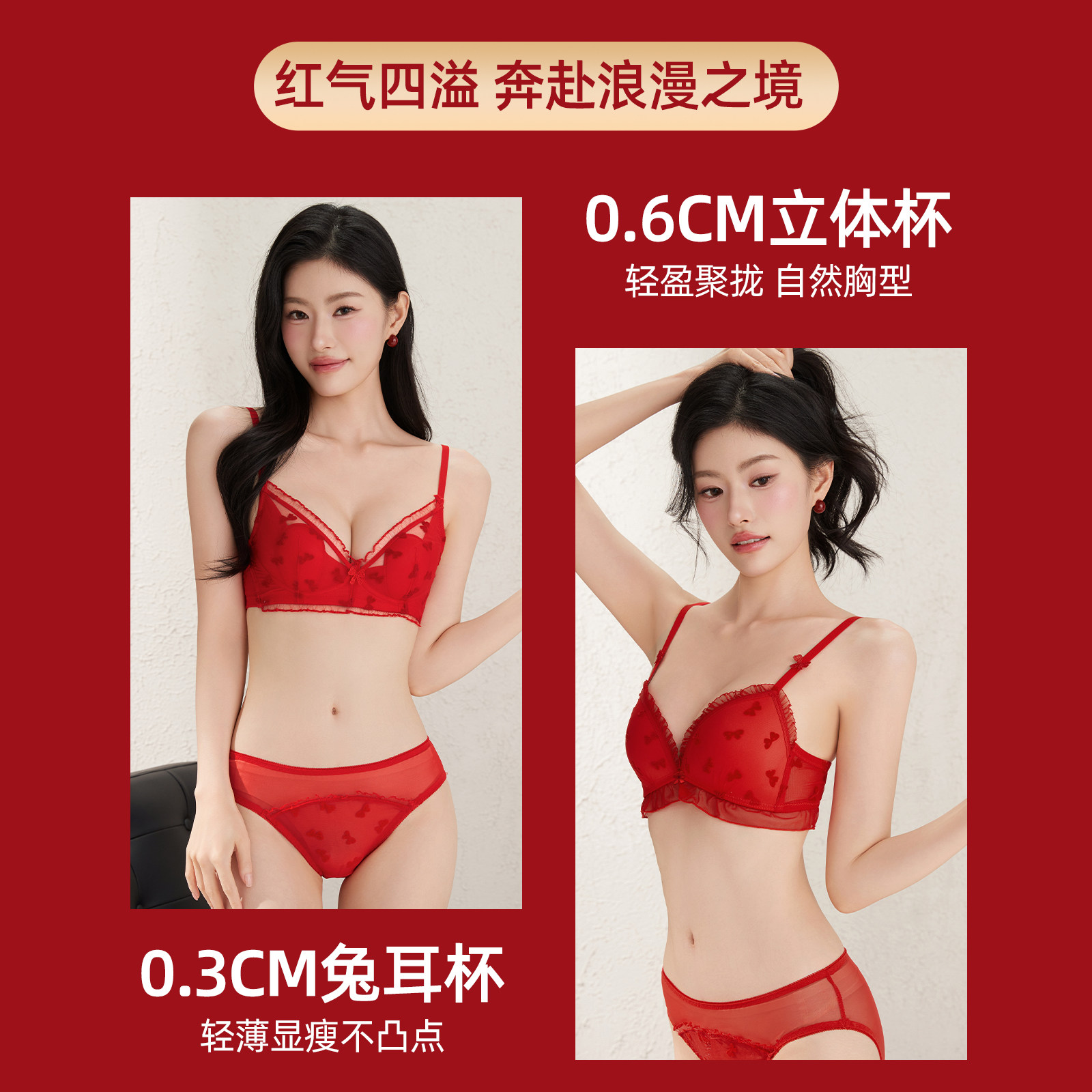 红运礼盒 六只兔子大红色礼盒内衣女小胸聚拢本命年婚礼文胸罩内裤