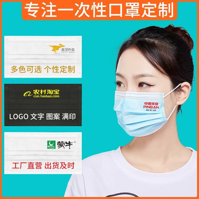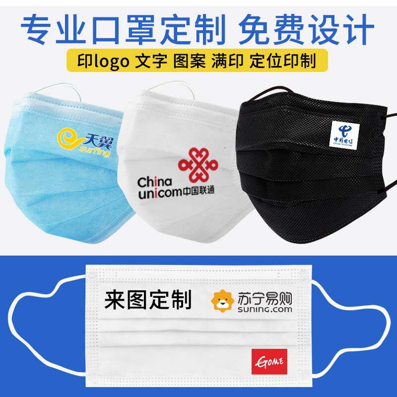 免费设计广告口 口罩定制logo一次性三层满w印字图熔喷布独立包装由