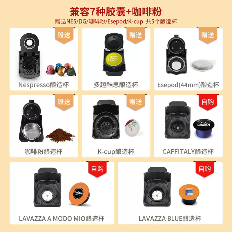 全半自动冷热萃取生日礼物 小熊小白咖胶囊工位咖啡机家用小型意式