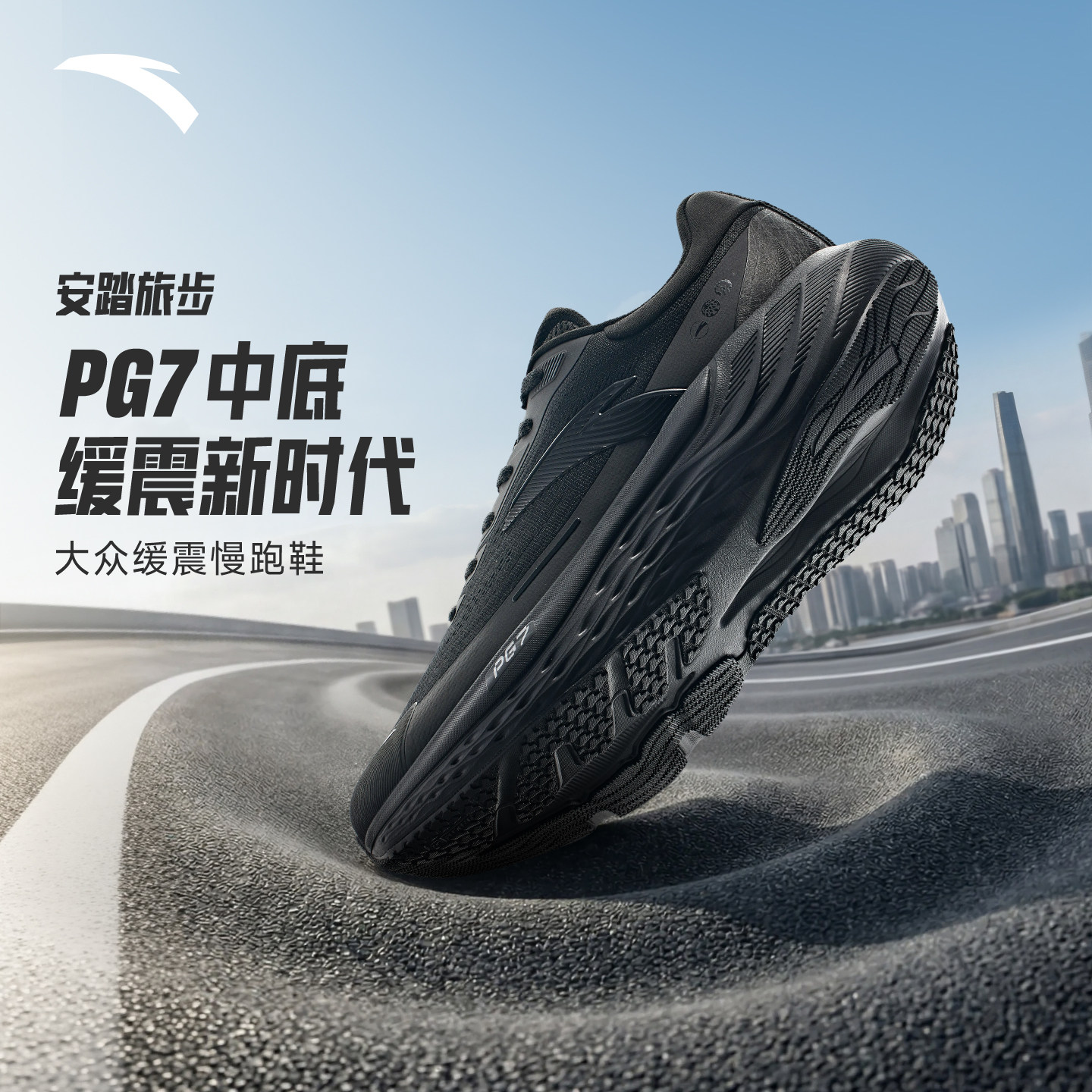 回弹跑鞋 安踏PG7 厚底舒适运动鞋 男耐磨跳绳鞋 旅步 缓震慢跑步鞋由