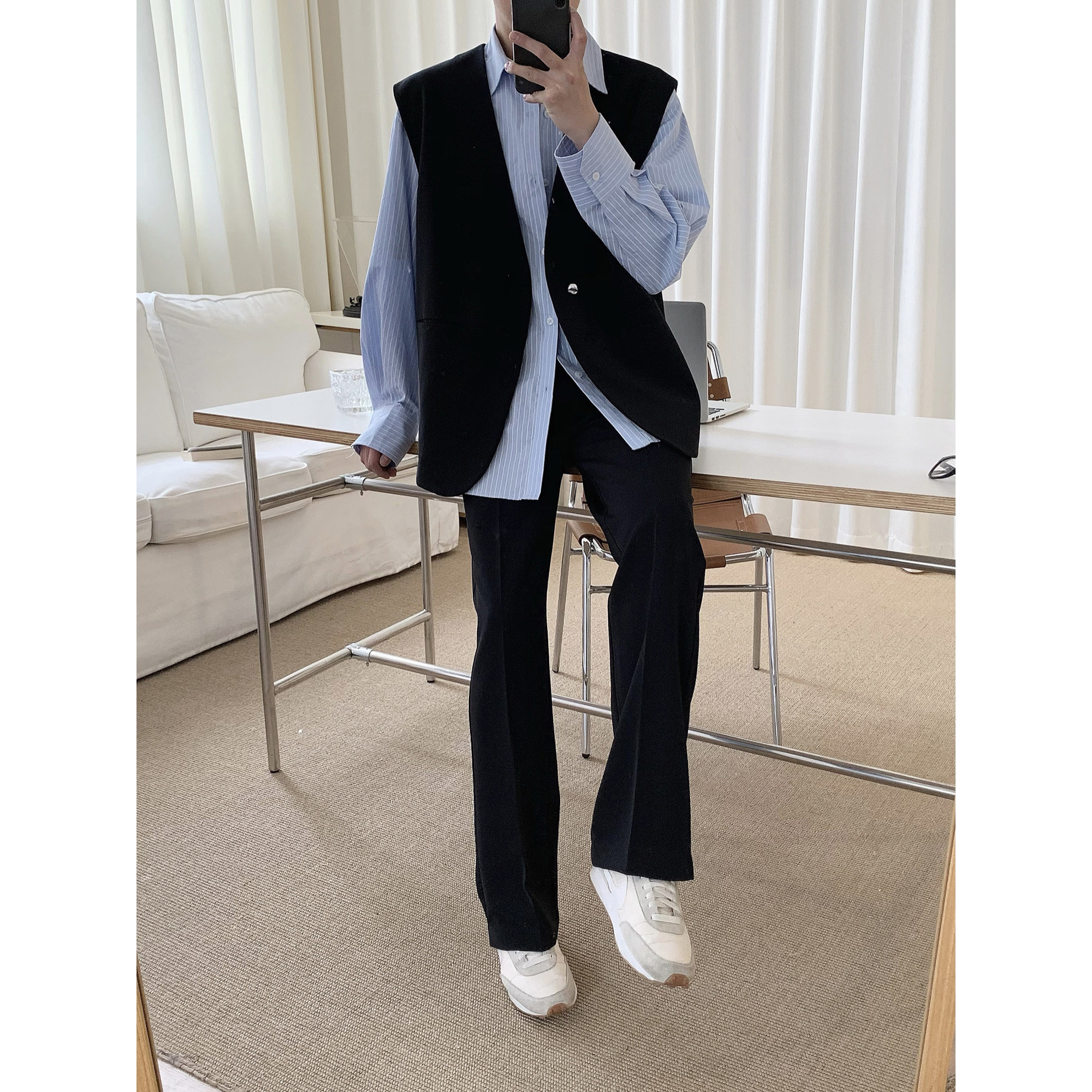 男女直筒微喇夏季 CeTky美式 高街cleanfit廓形西裤 黑色薄休闲裤 裤