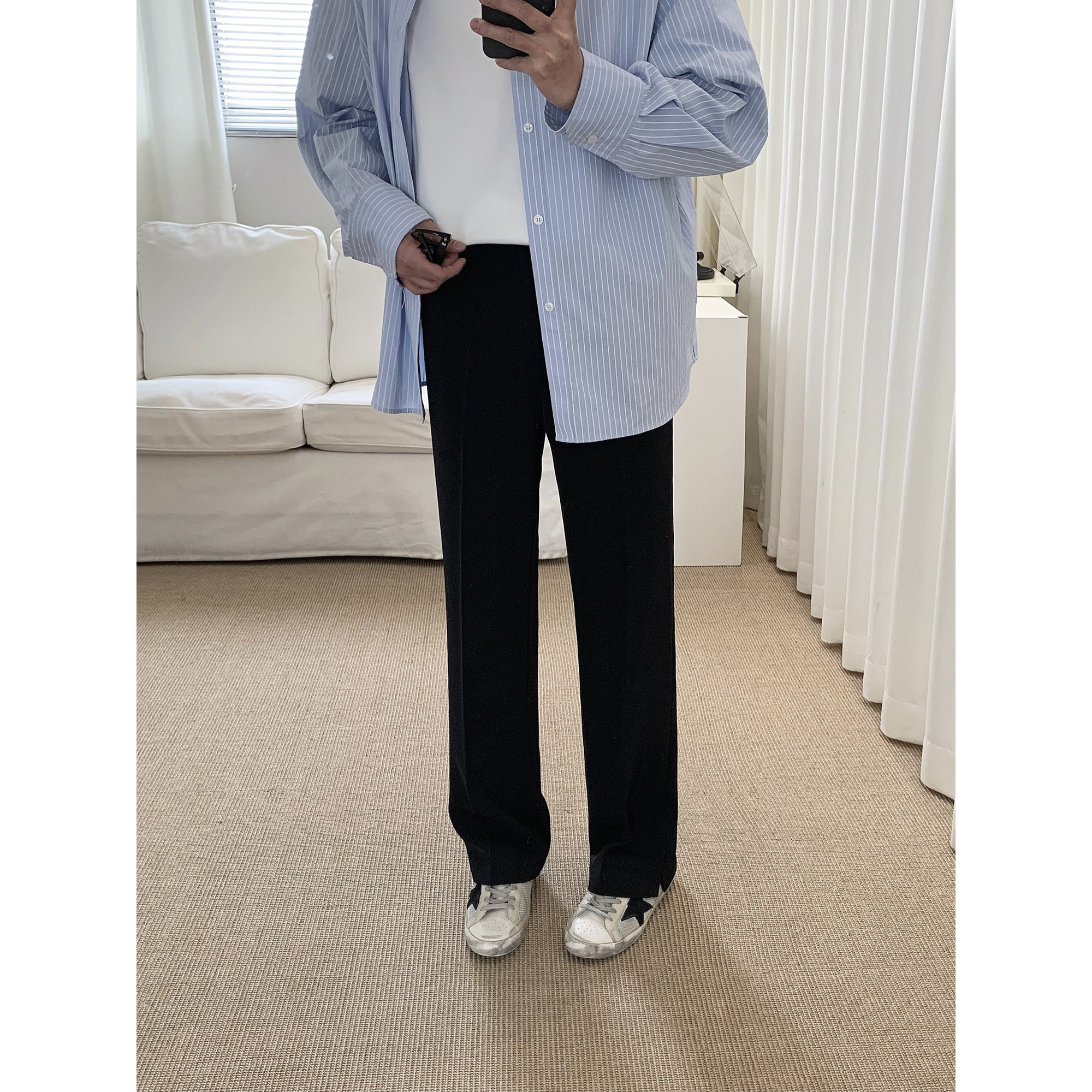 ELI 春夏松紧腰单褶复古通勤免烫垂感休闲裤 直筒西裤 耶加雪菲