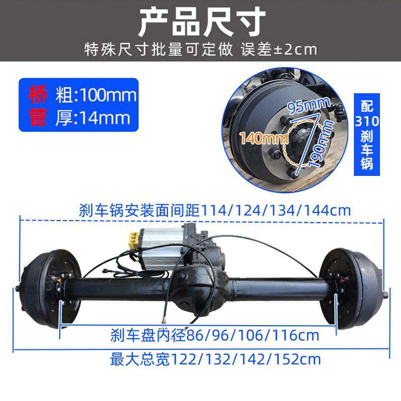 8吨10kw驱动车桥重型油刹四轮车铸钢包后桥310刹车锅 低速载重6由