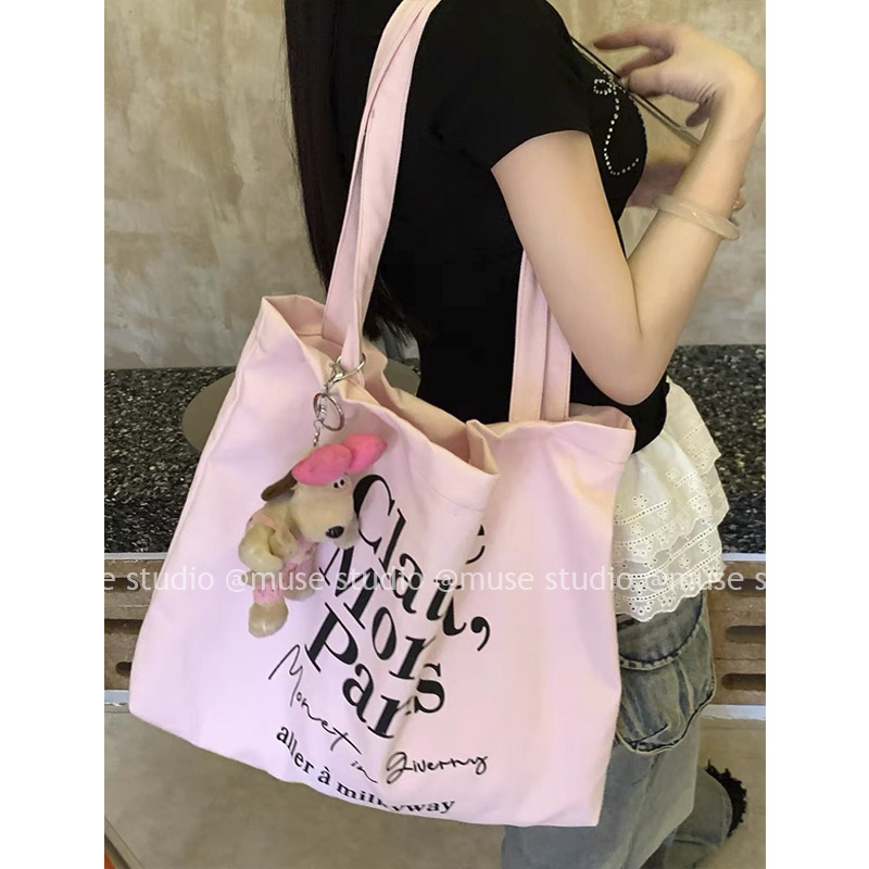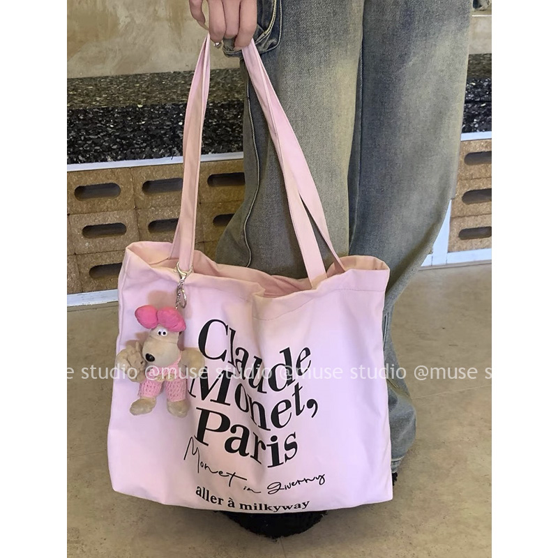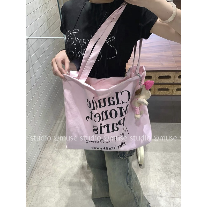 韩国ins简约字母帆布包2025新款 大容量通勤单肩包托特包 博主时尚