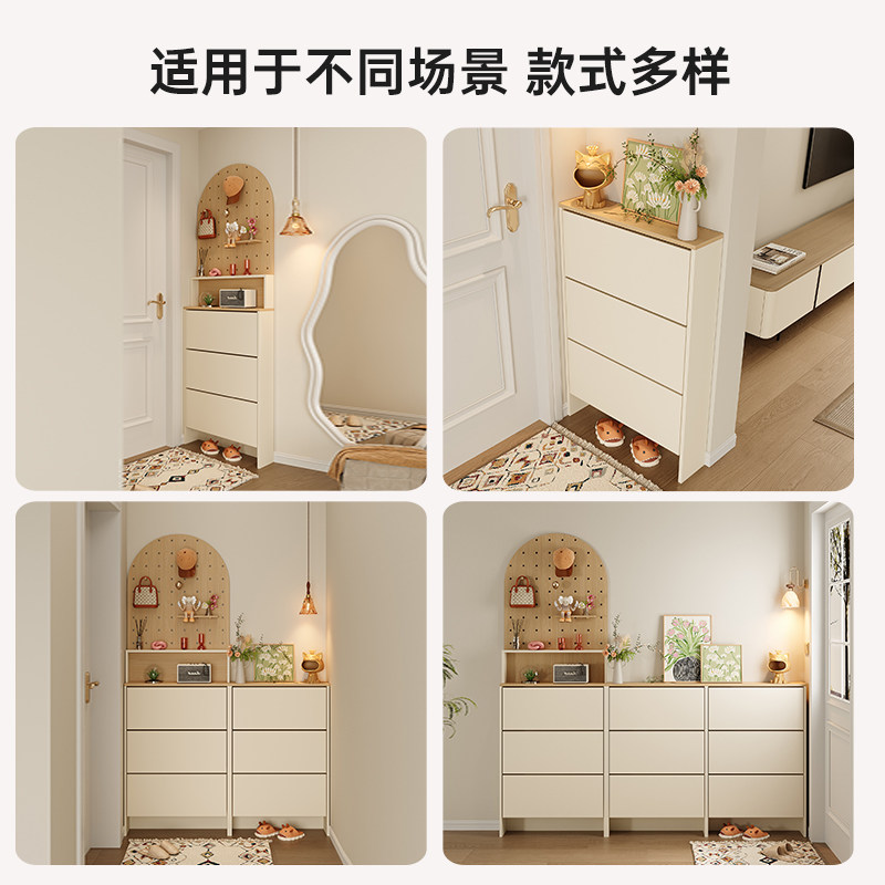 柜家用门口入户翻斗玄关柜边柜一体靠墙收纳柜 奶油风洞洞板超薄鞋