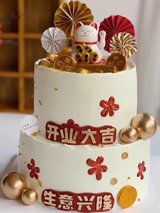 饰摆件乔迁之喜中国风新年福如东海寿比南山甜品插牌 招财猫蛋糕装由