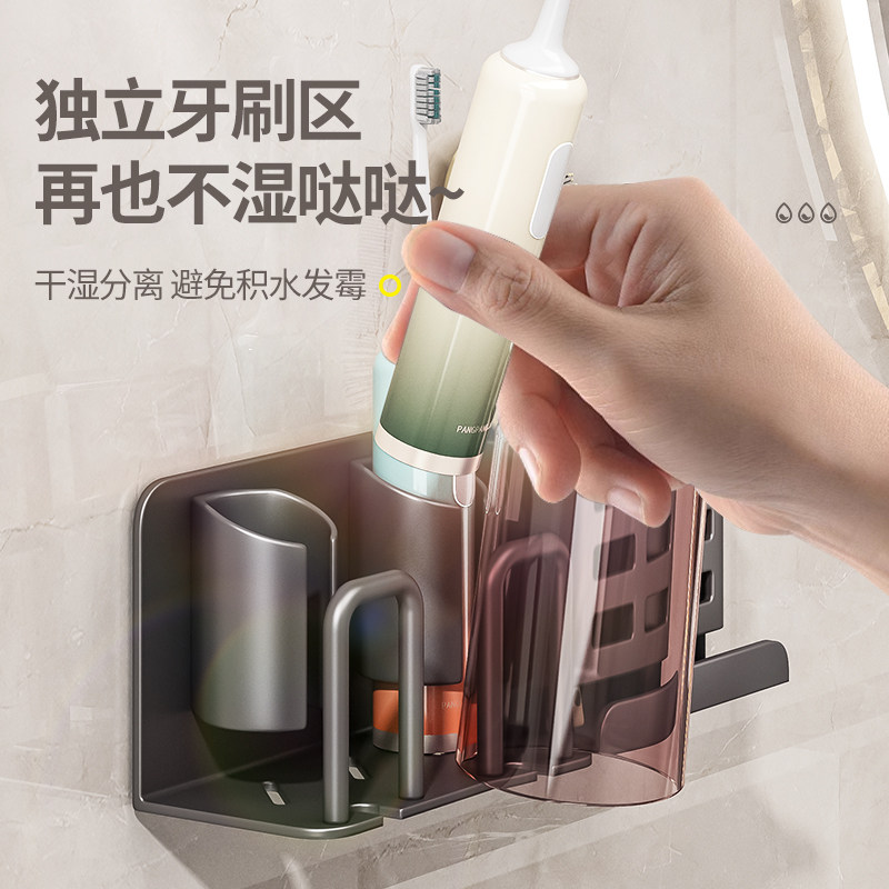 免打孔卫生间牙具座牙膏收纳浴室 牙刷牙杯壁挂置物架电动牙刷套装