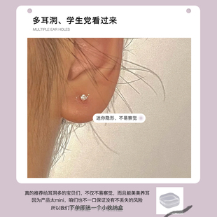 S999纯银针迷你锆石耳钉女高级感精致小巧养耳洞耳环睡觉免摘耳饰