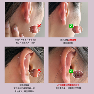 F136钛合金耳钉医用植入级防过敏养耳洞唇钉耳蜗耳骨钉睡觉免摘