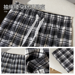 女装 新款 2026夏装 复古格纹长款 显瘦阔腿裤 宽松款 她池松紧腰休闲裤